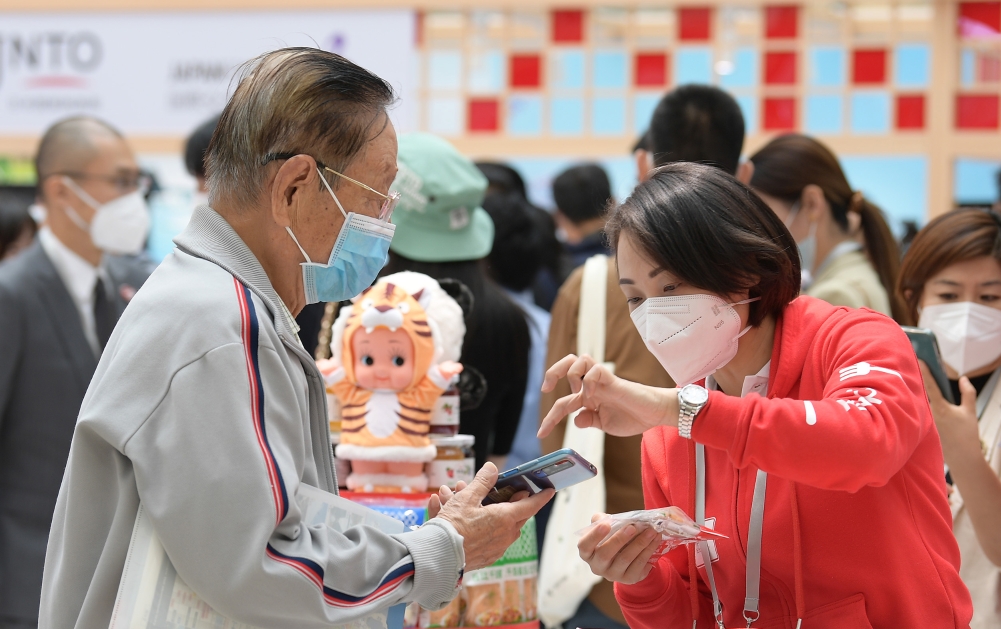 9月24日,游客在日本企業(yè)展臺前咨詢。