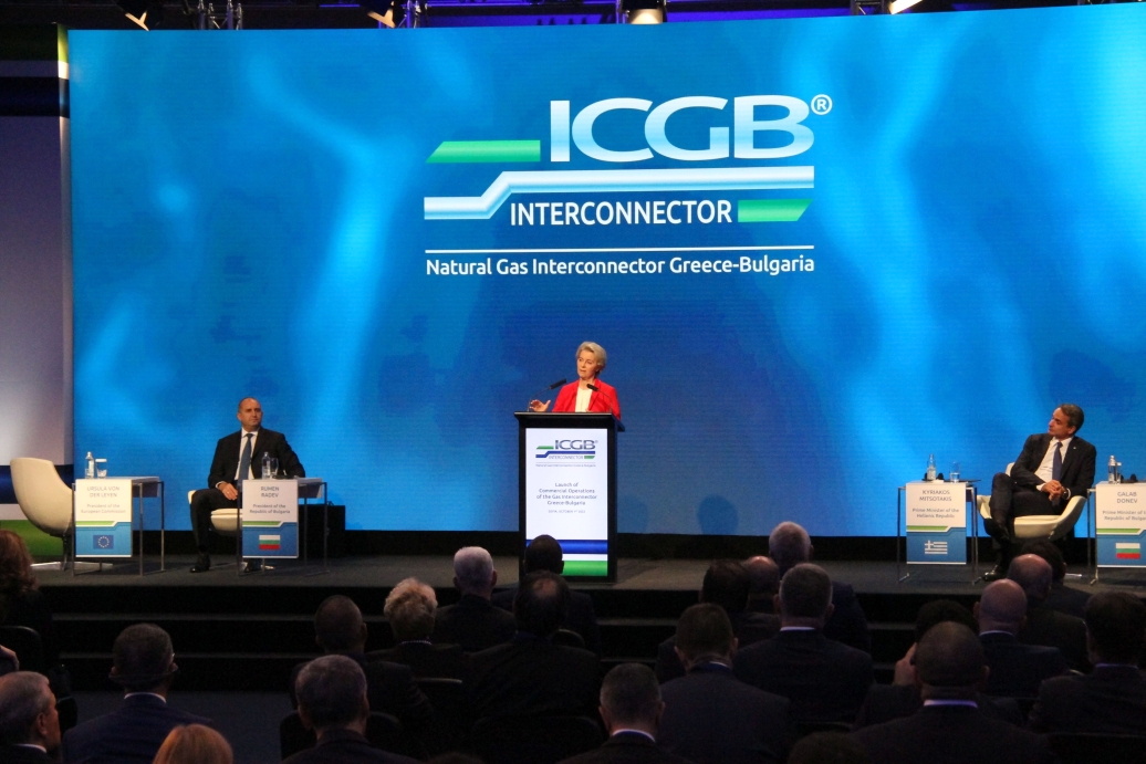 10月1日,歐盟委員會主席馮德萊恩在出席希臘-保加利亞天然氣管道商業(yè)運營啟動儀式上講話。