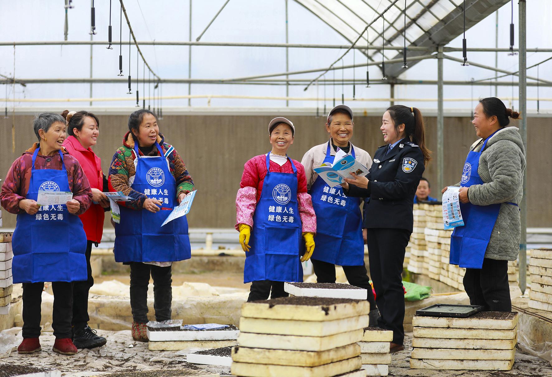 2月16日,貴州省黔西市司法局鐘山司法所工作人員深入箐山社區(qū)育苗大棚,通過搭把手、拉家常等方式,向農(nóng)戶宣傳安全防范知識。
