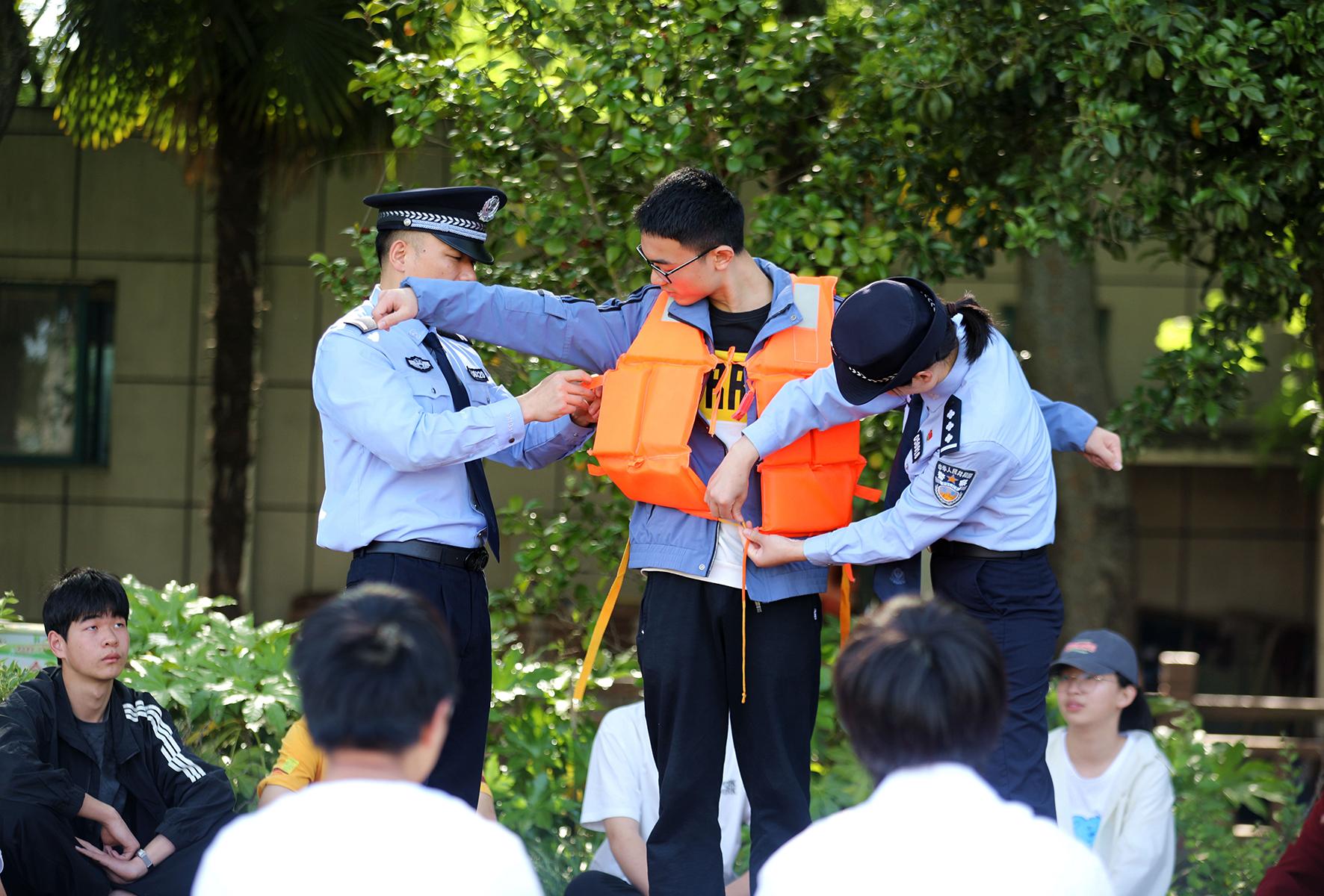 5月9日,安徽省阜陽(yáng)市阜南縣公安局城關(guān)派出所民警和藍(lán)天救援隊(duì)志愿者在第三小學(xué)為學(xué)生們演示防溺水措施。