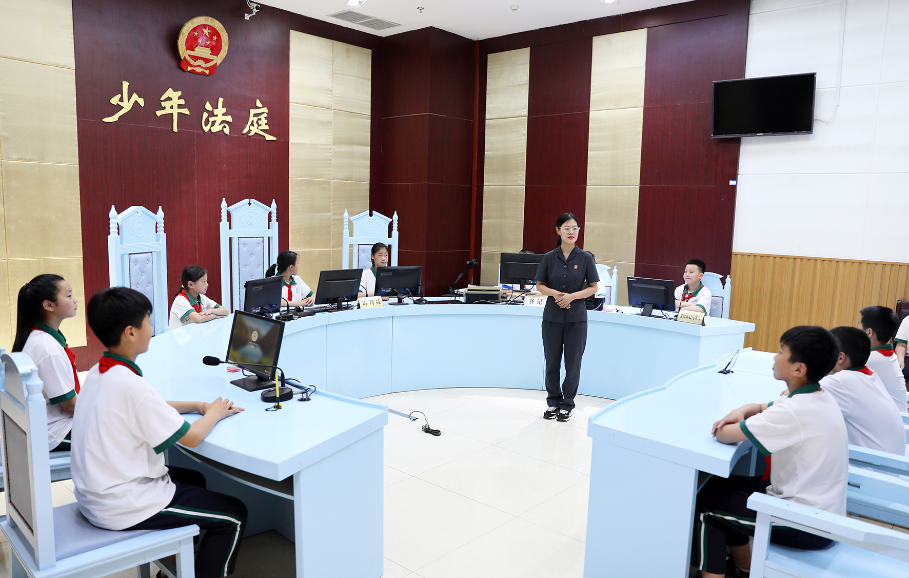5月30日,山東省臨沭縣人民法院舉辦“與法‘童’行,共護未來”法治教育開放日活動,來自第五實驗小學的50名學生走進法院,零距離感受法治文化,接受法治教育。