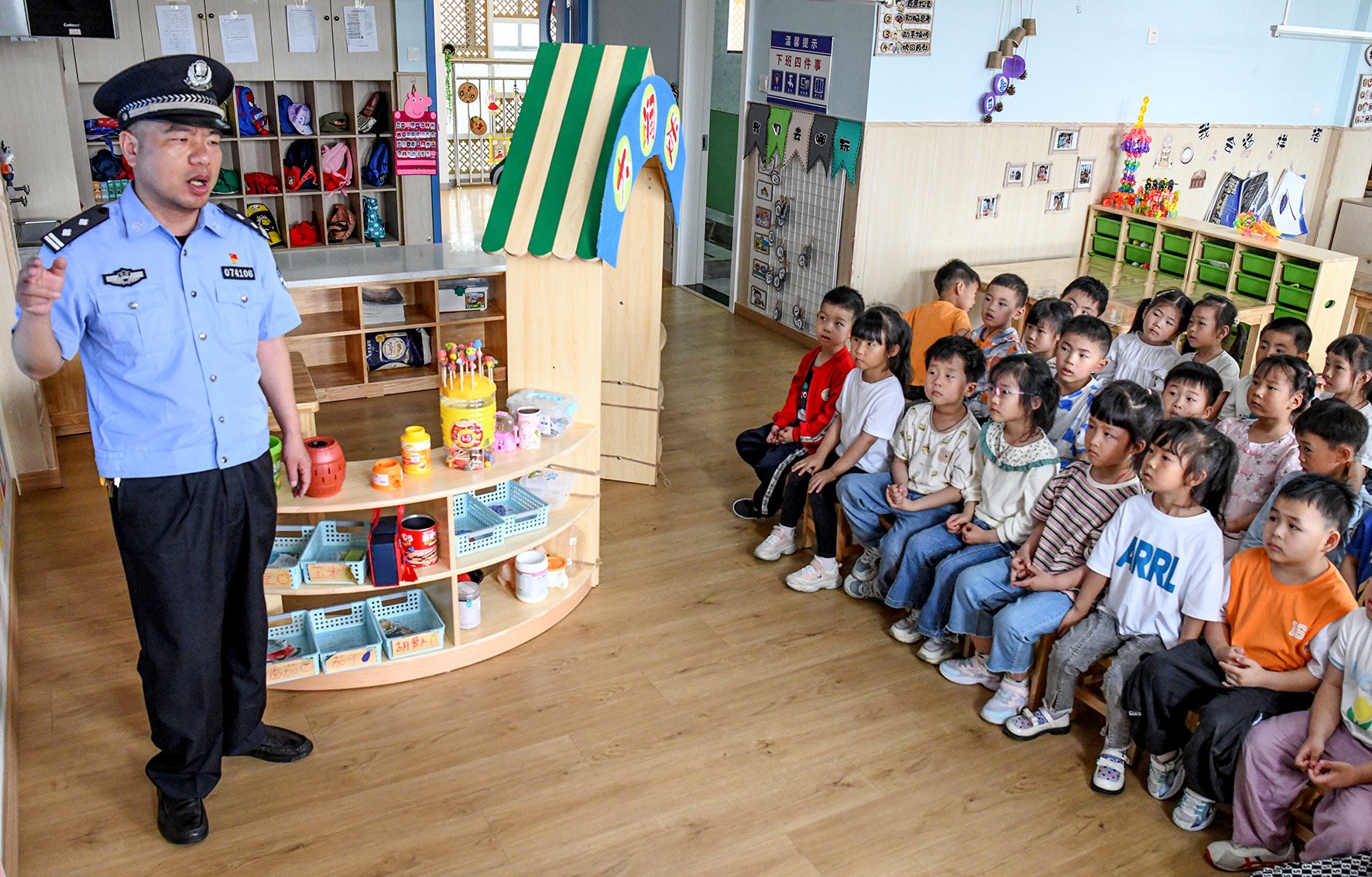 5月30日,江西省共青城市公安局民警來到轄區(qū)健康城幼兒園,為孩子們送上一堂精彩的平安教育課。