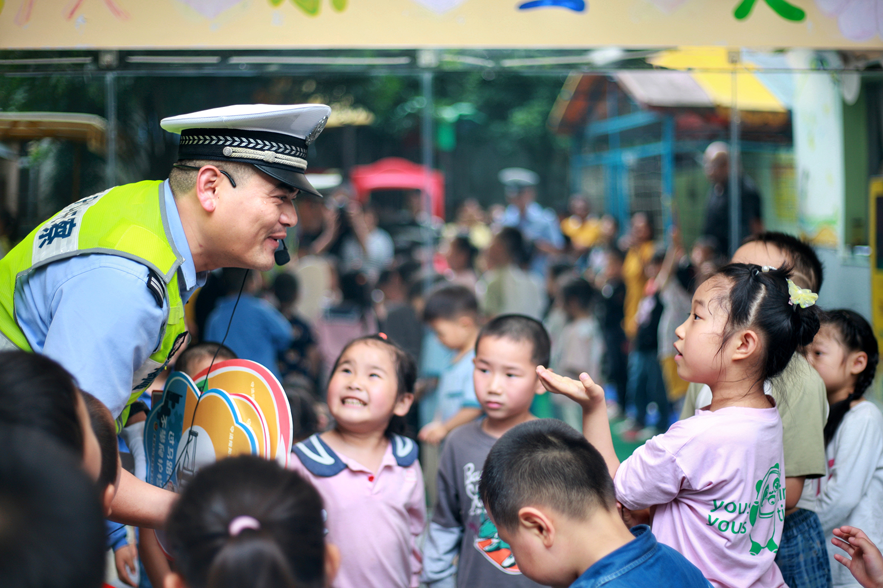5月31日,山東省棗莊市公安局嶧城分局交警大隊民輔警走進轄區(qū)韓林小學幼兒園,以交通情景游戲等形式,讓小朋友學習交通法規(guī)。