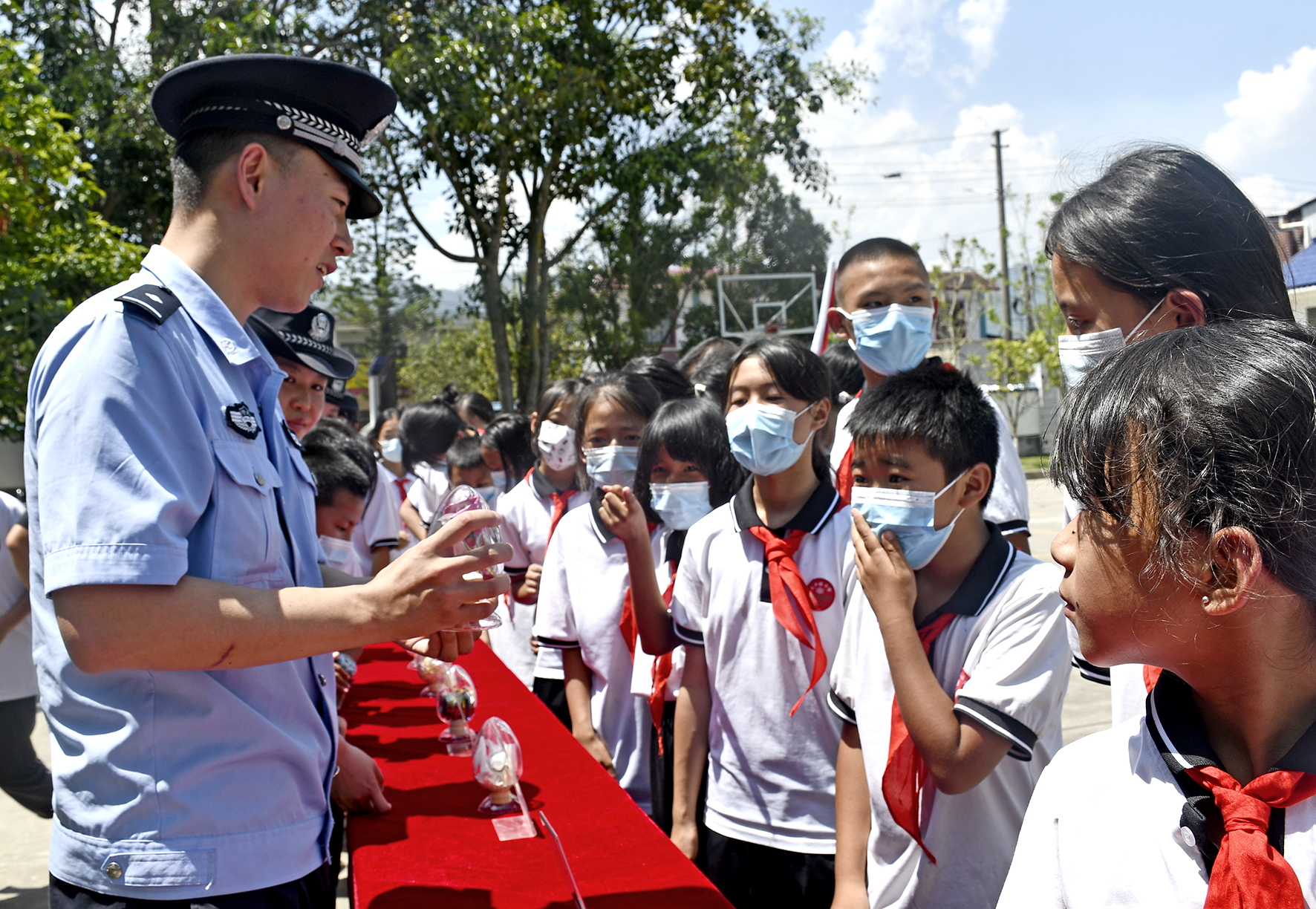 5月31日,安徽省馬鞍山市和縣公安局石楊派出所民警走進石楊鎮(zhèn)中心小學,通過緝毒犬表演、防溺水體驗、傳授警體拳、安全知識有獎競答等活動,讓孩子們在寓教于樂中學習安全知識。