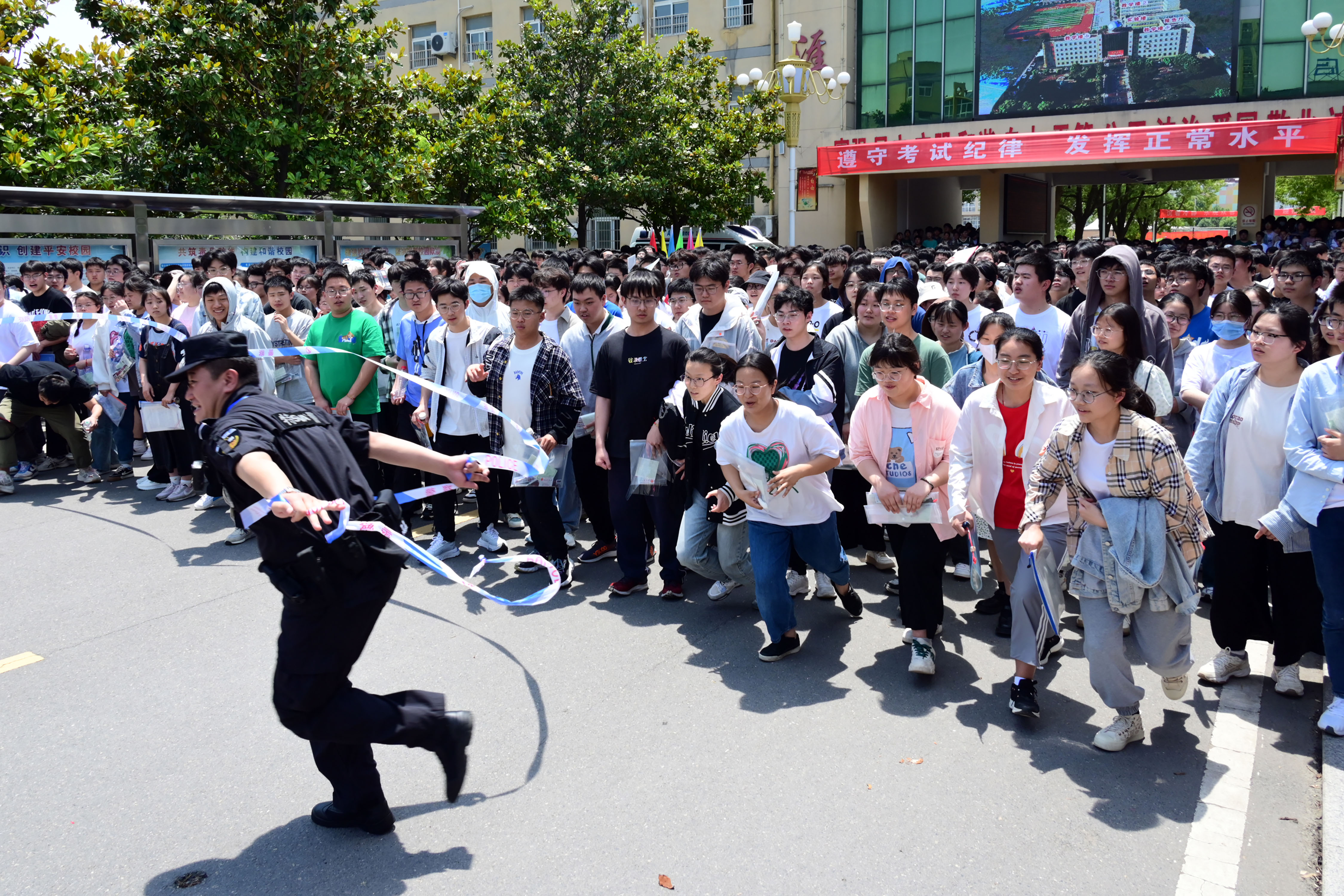 6月7日,安徽固鎮(zhèn)縣高考首場(chǎng)語(yǔ)文考試結(jié)束,實(shí)驗(yàn)中學(xué)考點(diǎn)執(zhí)勤民警解除警戒線(xiàn)后考生沖出考場(chǎng)。
