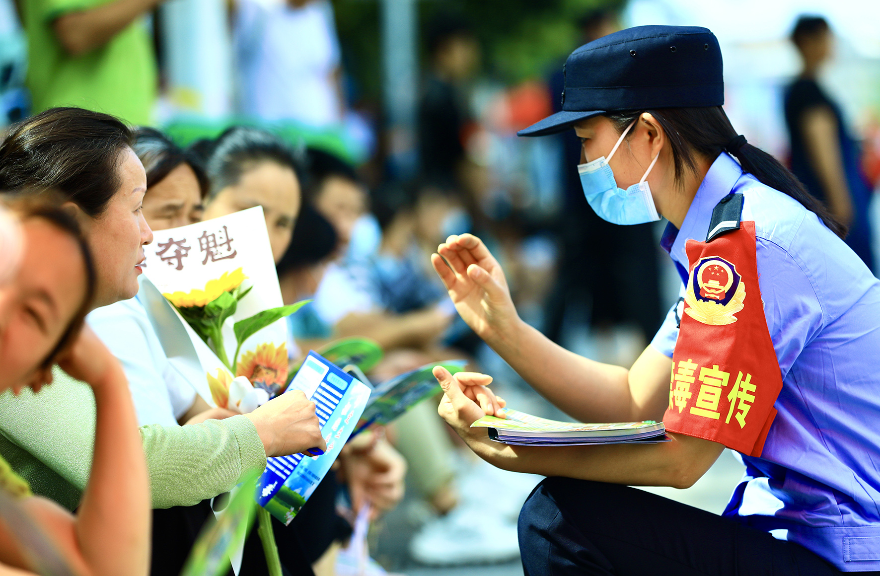 6月7日,安徽省亳州市公安局禁毒支隊(duì)民輔警到亳州一中考點(diǎn)開(kāi)展禁毒宣傳活動(dòng)。