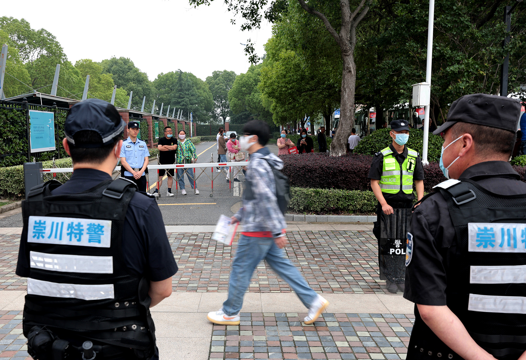6月7日,江蘇省南通市公安局巡特警隊(duì)員在南通大學(xué)附屬中學(xué)考點(diǎn)執(zhí)勤。