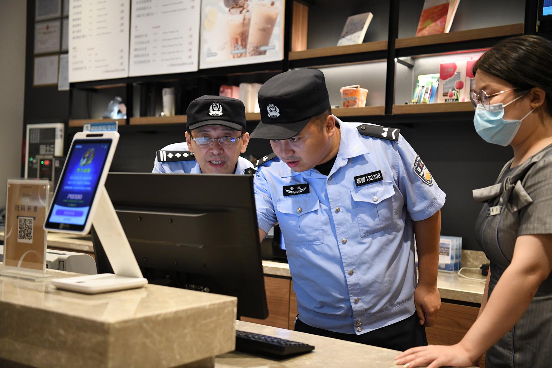 7月9日晚,安徽省馬鞍山市和縣公安局民警正在對(duì)歌廳、網(wǎng)吧等行業(yè)場所開展檢查,及時(shí)發(fā)現(xiàn)并消除治安隱患。