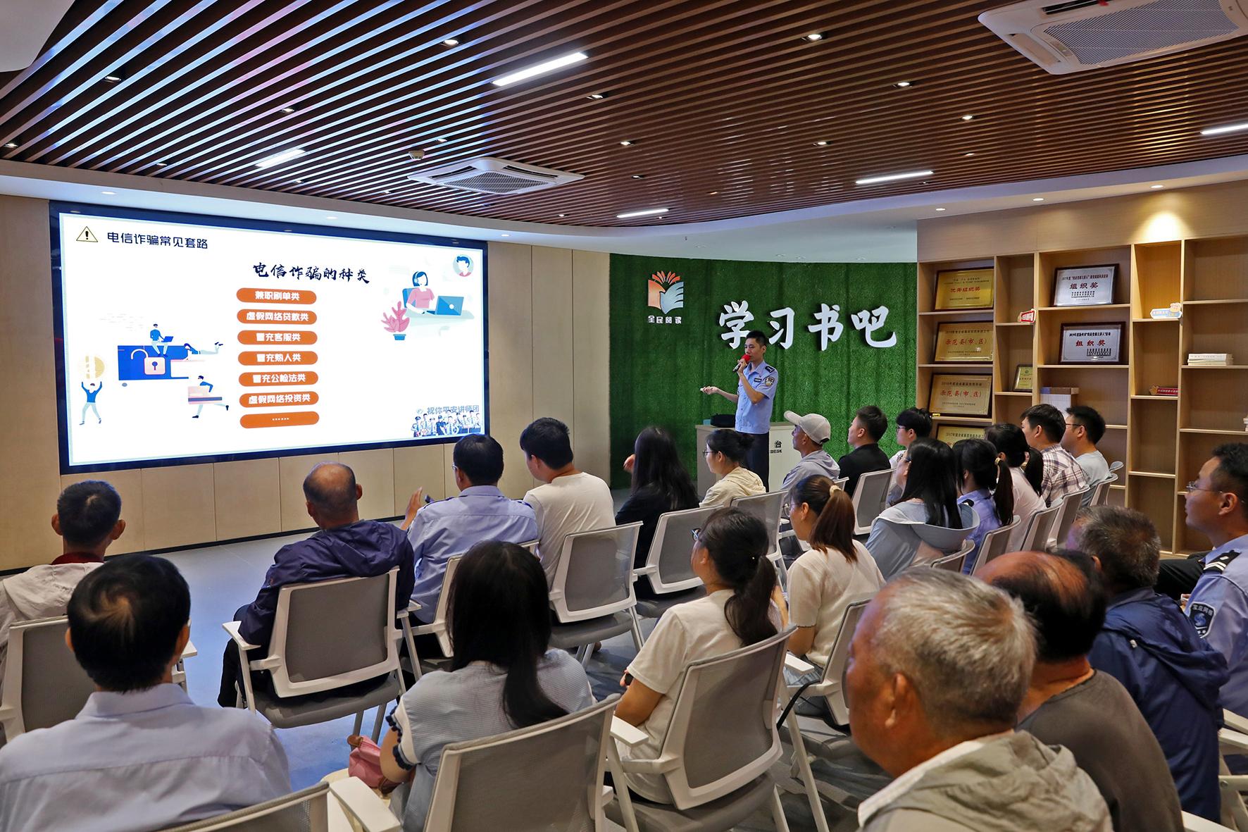 7月18日,江蘇省寶應縣公安局民警走進寶應縣新時代文明實踐中心舉辦暑期反電信詐騙宣傳講座。