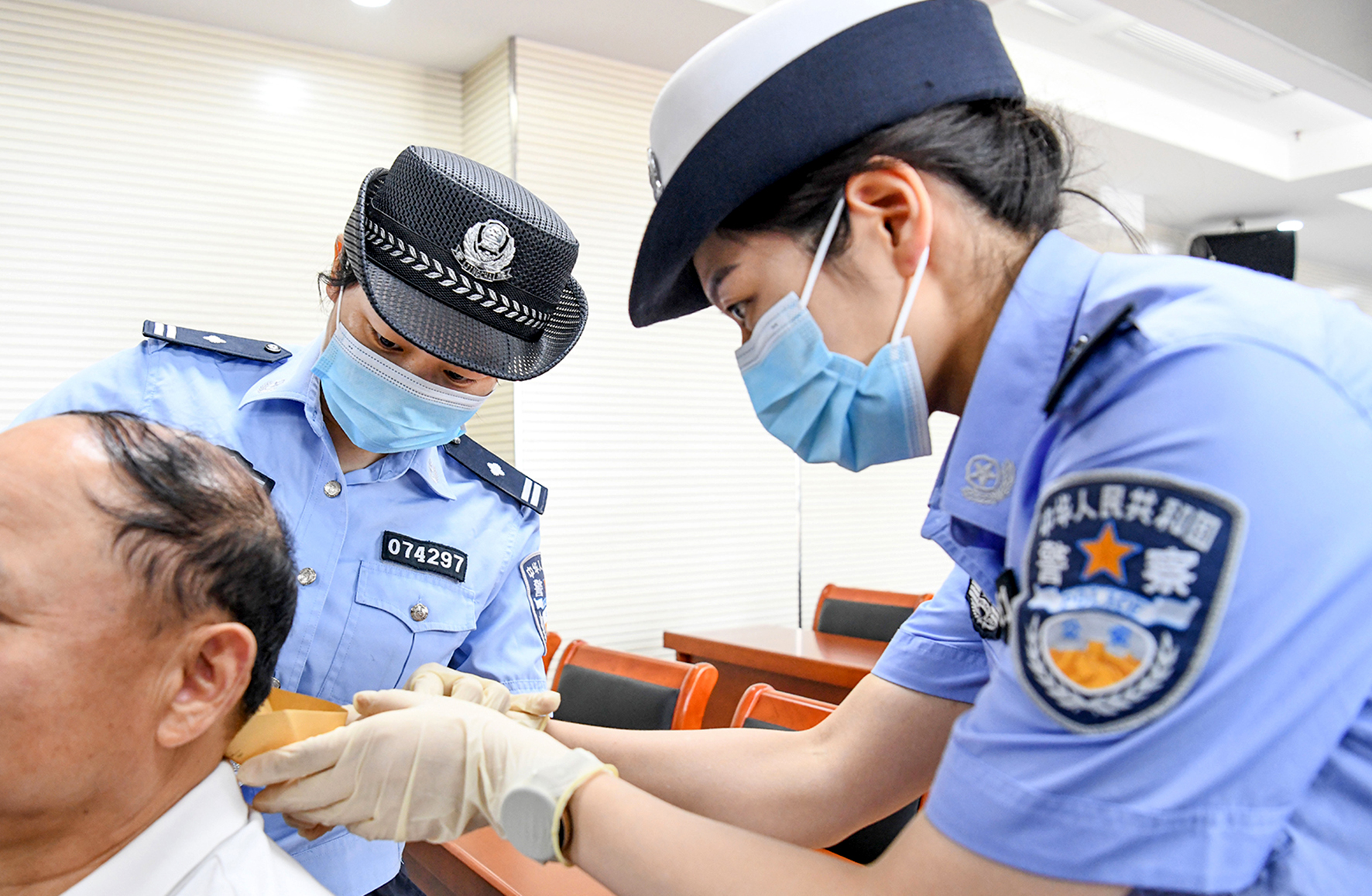 8月29日,安徽省含山縣公安局禁毒民警對校車駕駛員毛發(fā)進(jìn)行采樣。