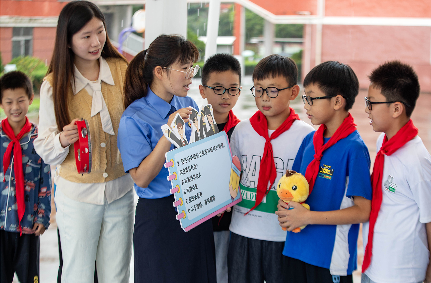 9月15日,江蘇省泰州市姜堰區(qū)人民檢察院干警組織克強學校的學生以“擊鼓傳花”游戲的方式學習網(wǎng)絡安全知識。
