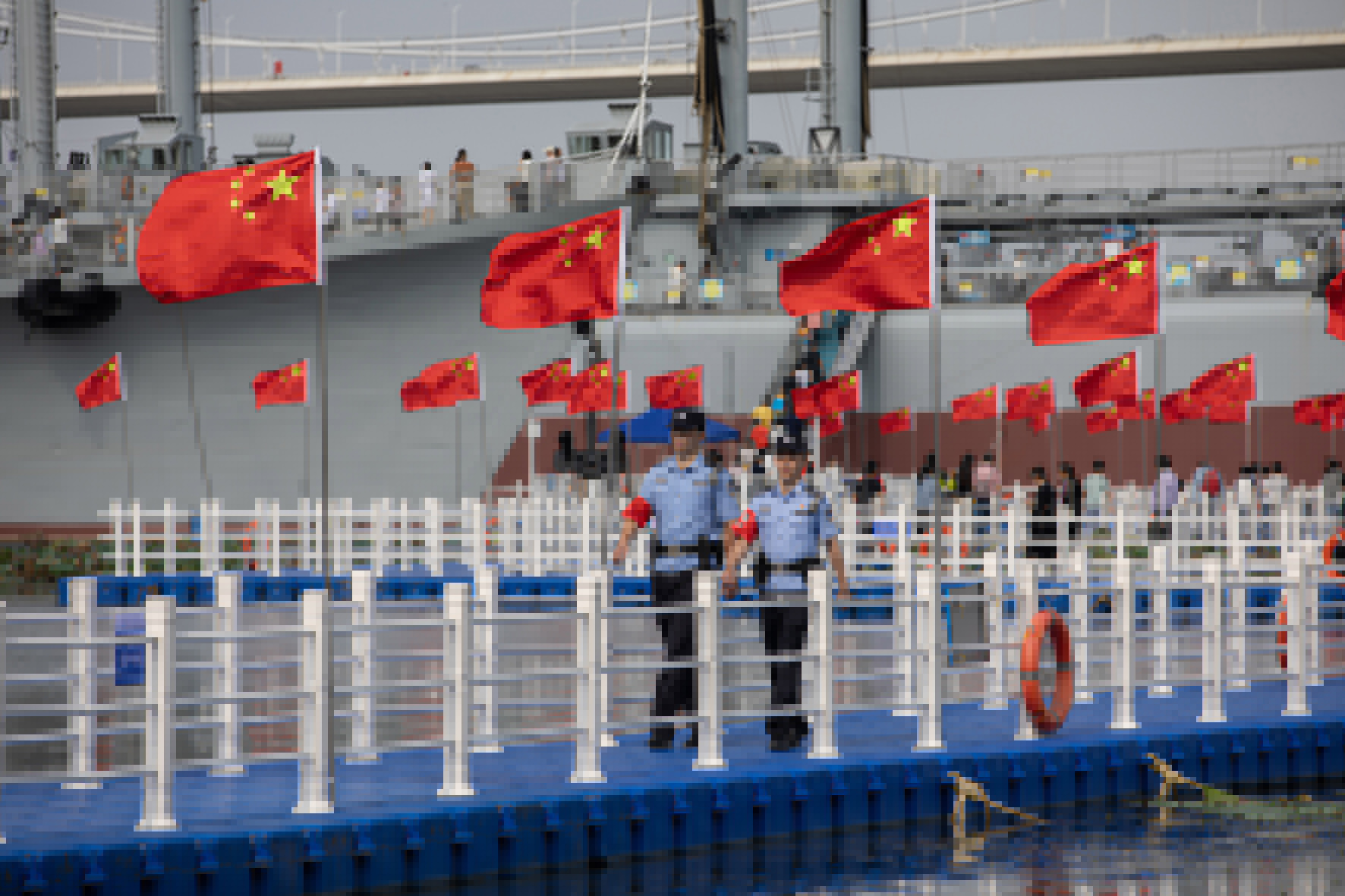 10月1日,長江航運(yùn)公安局鎮(zhèn)江分局泰州派出所民警在泰州海軍艦艇文化園執(zhí)勤值守。