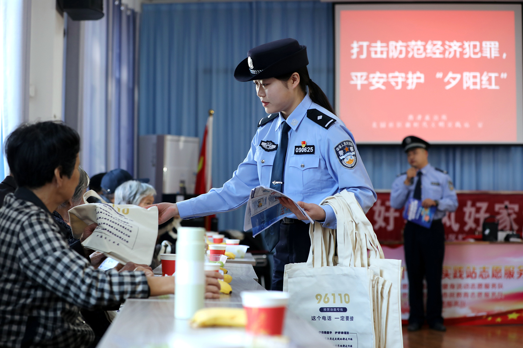 10月23日,安徽省馬鞍山市公安局綜合警務(wù)站軍民站組織民警前往社區(qū)開展“九九平安敬老情 守護(hù)平安‘夕陽紅’”主題敬老反詐宣傳活動(dòng)。