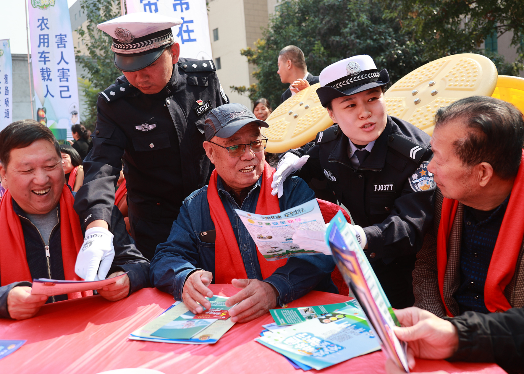 10月22日,山東省棗莊市公安局市中分局交通警察大隊(duì)民警在當(dāng)?shù)孛锨f鎮(zhèn)大郭莊村向老人們宣傳交通安全知識(shí)。