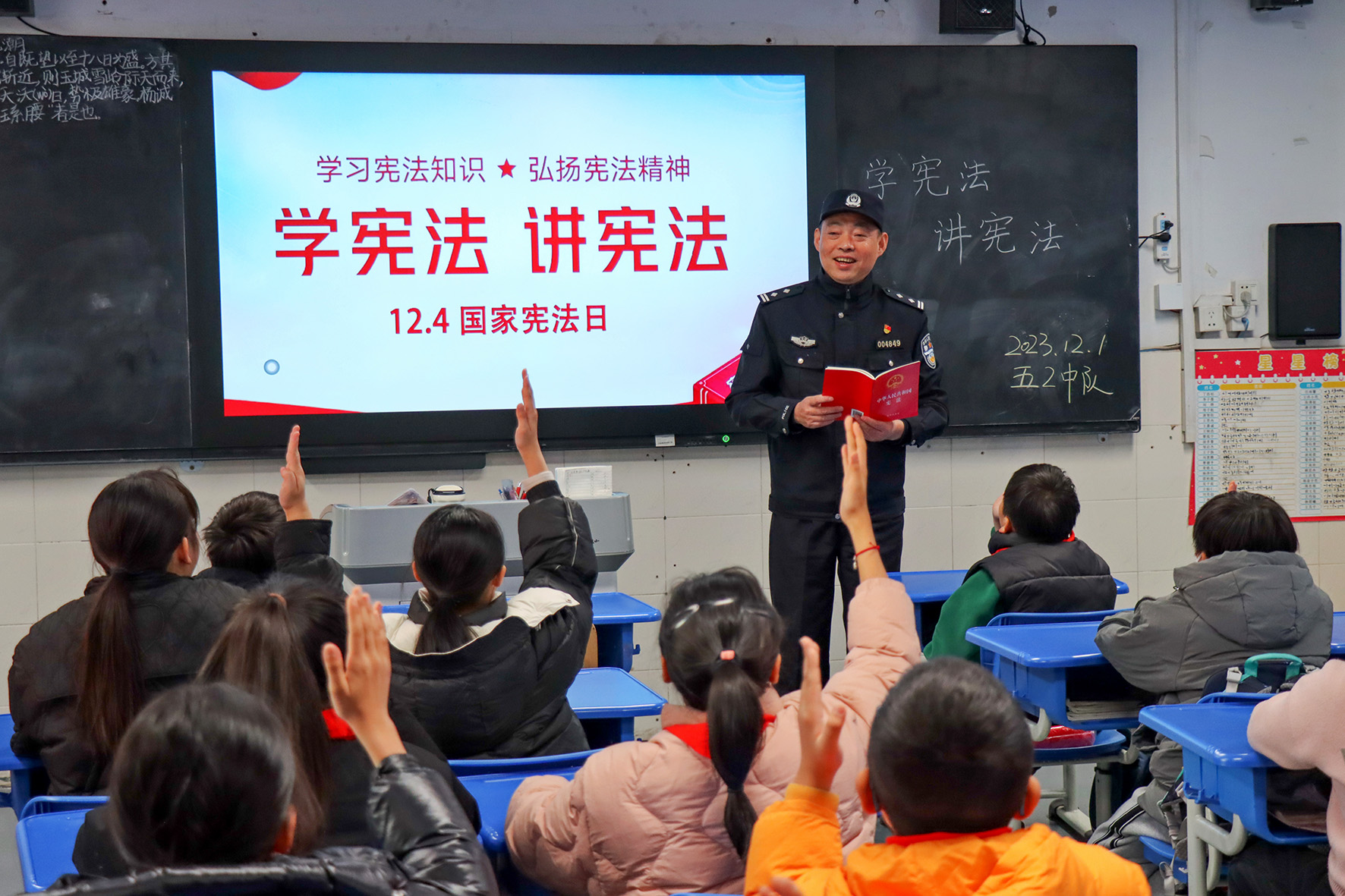 12月1日,安徽省合肥市公安局瑤海分局大通路派出所民警走進(jìn)轄區(qū)學(xué)校,開展“憲法宣傳進(jìn)校園”活動。