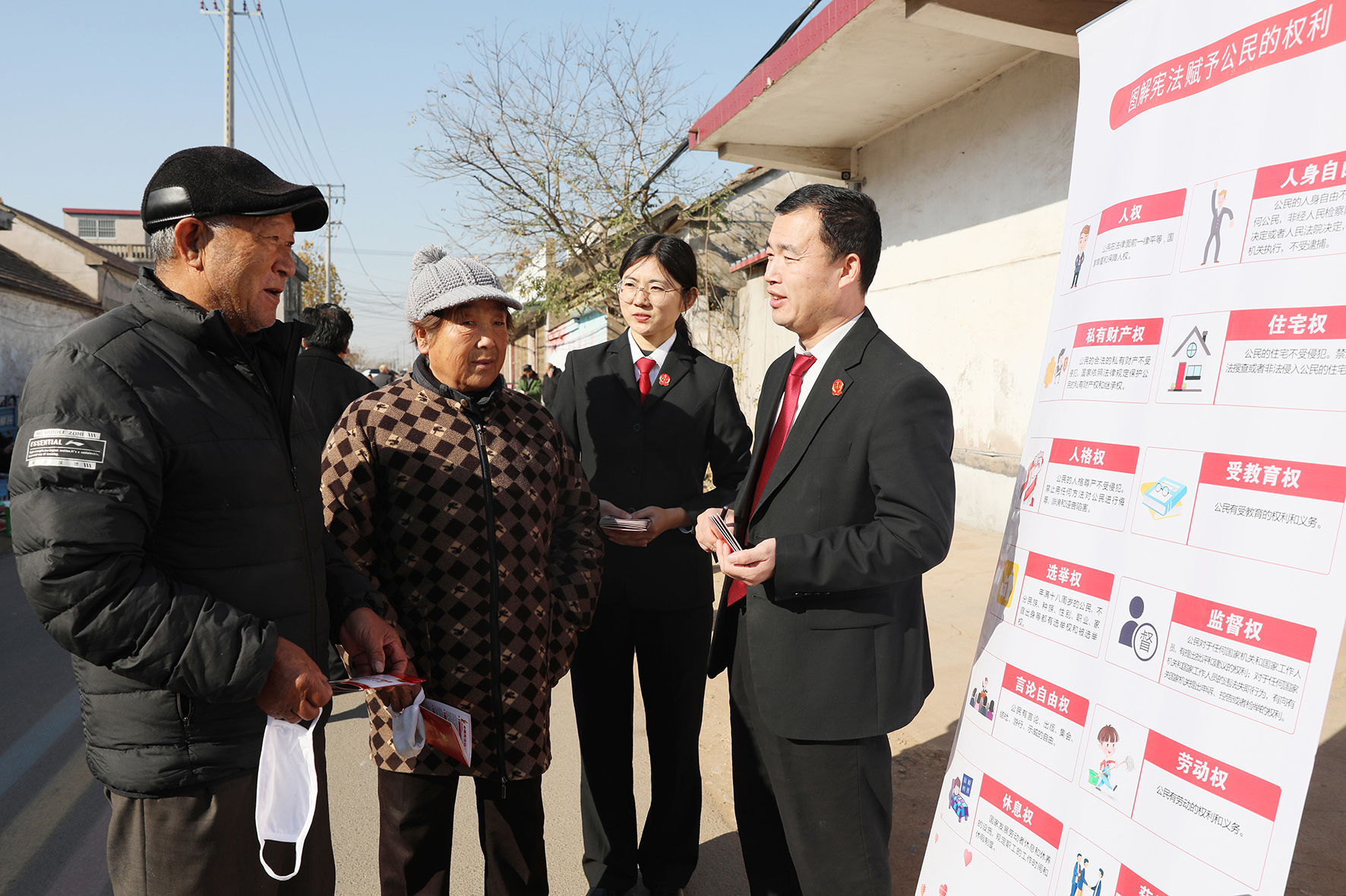 12月1日,山東省臨沭縣人民法院“沭法青穗”普法志愿服務(wù)隊(duì)利用趕集日,組織干警向群眾發(fā)放憲法宣傳手冊,宣講憲法知識。