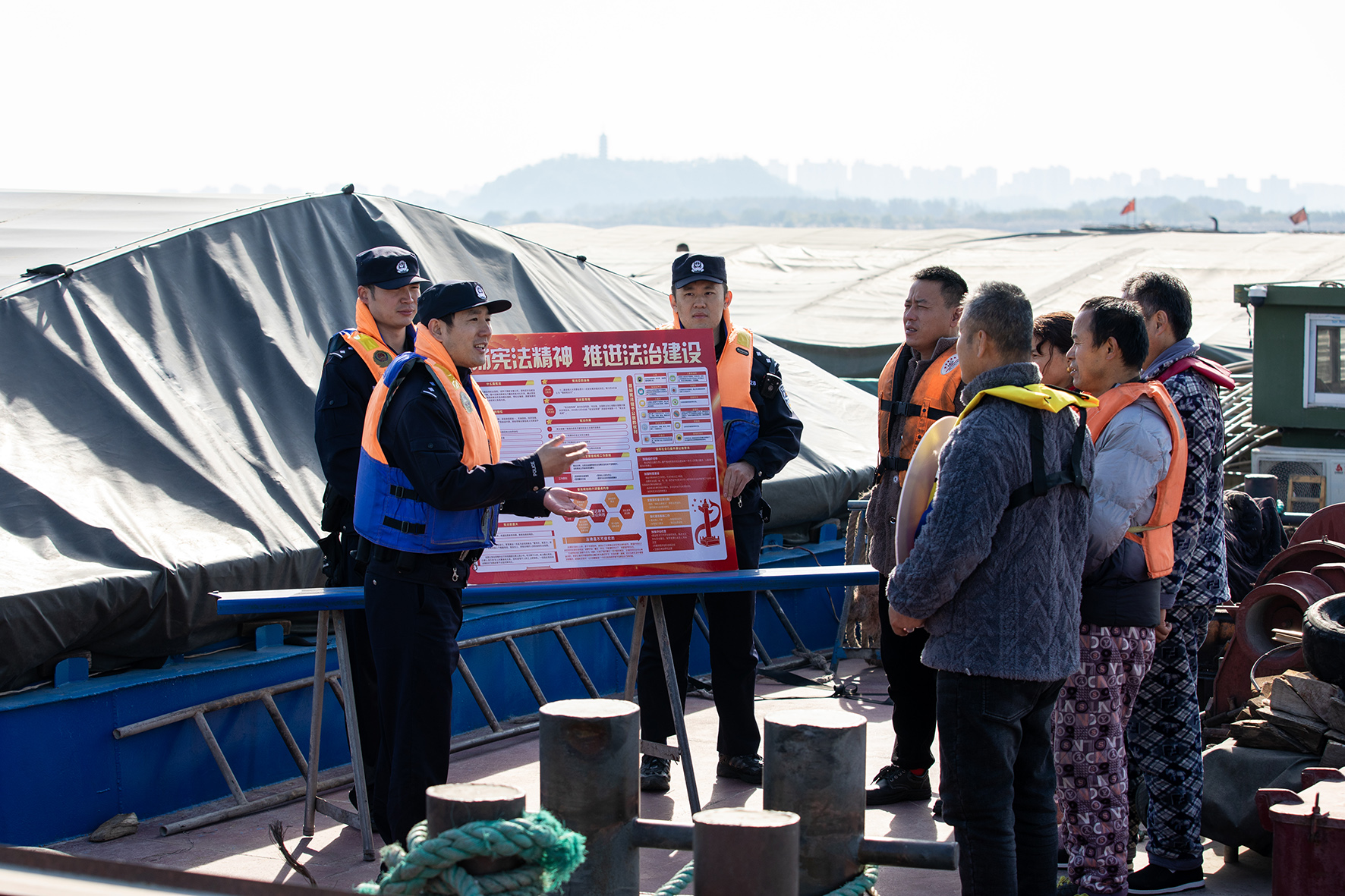 12月1日,長江航運(yùn)公安局鎮(zhèn)江分局結(jié)合“百萬警進(jìn)千萬家”活動,組織民警前往轄區(qū)長江錨地水域開展“船頭普法課堂”,普及憲法知識。