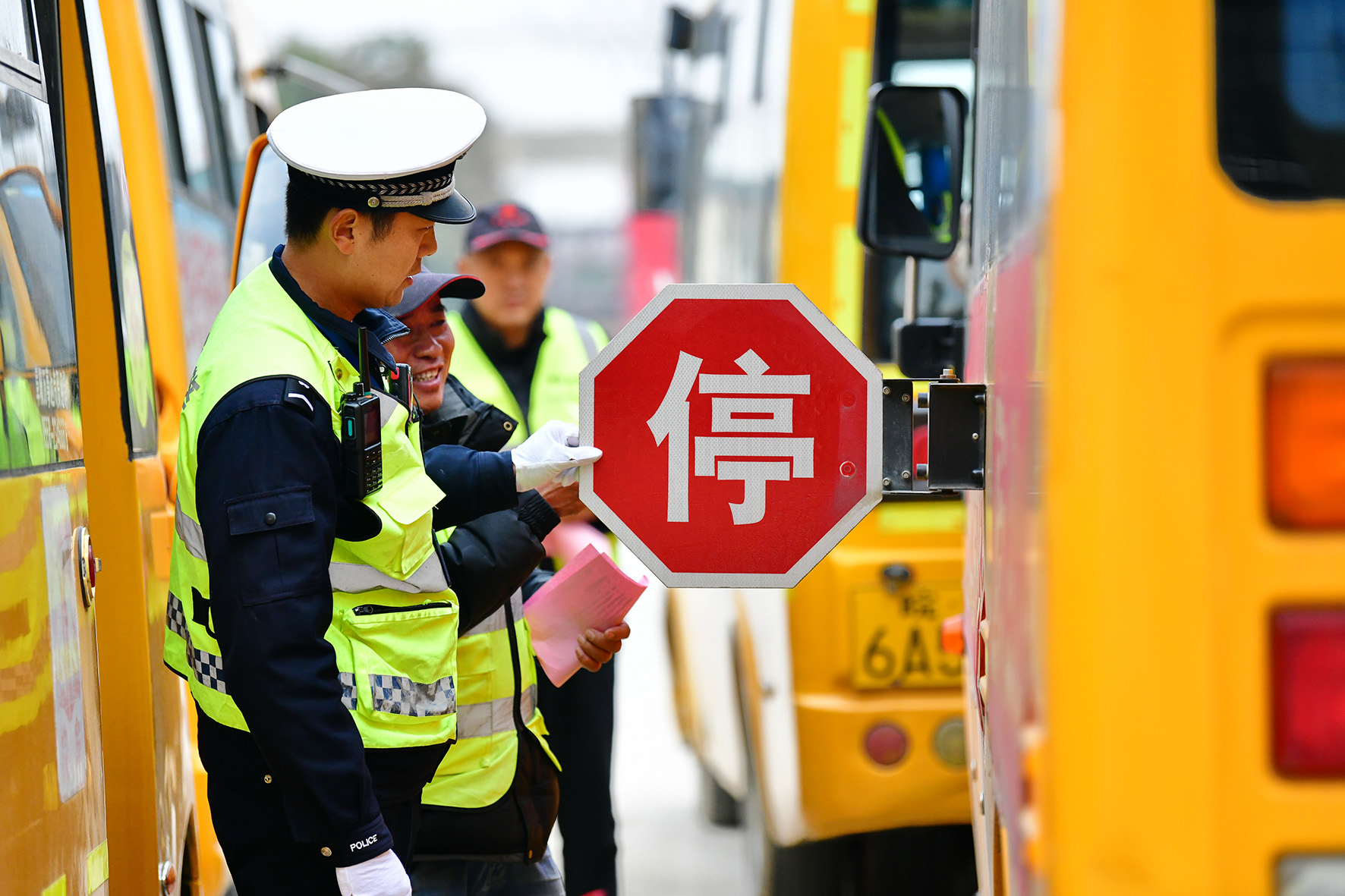 2月19日,安徽省阜南縣公安局交管大隊民警在檢查校車安全設(shè)施。開學(xué)臨近,阜南縣公安局交管大隊組織民警對全縣各中小學(xué)校校車進(jìn)行全面檢查,保障學(xué)生乘車安全。