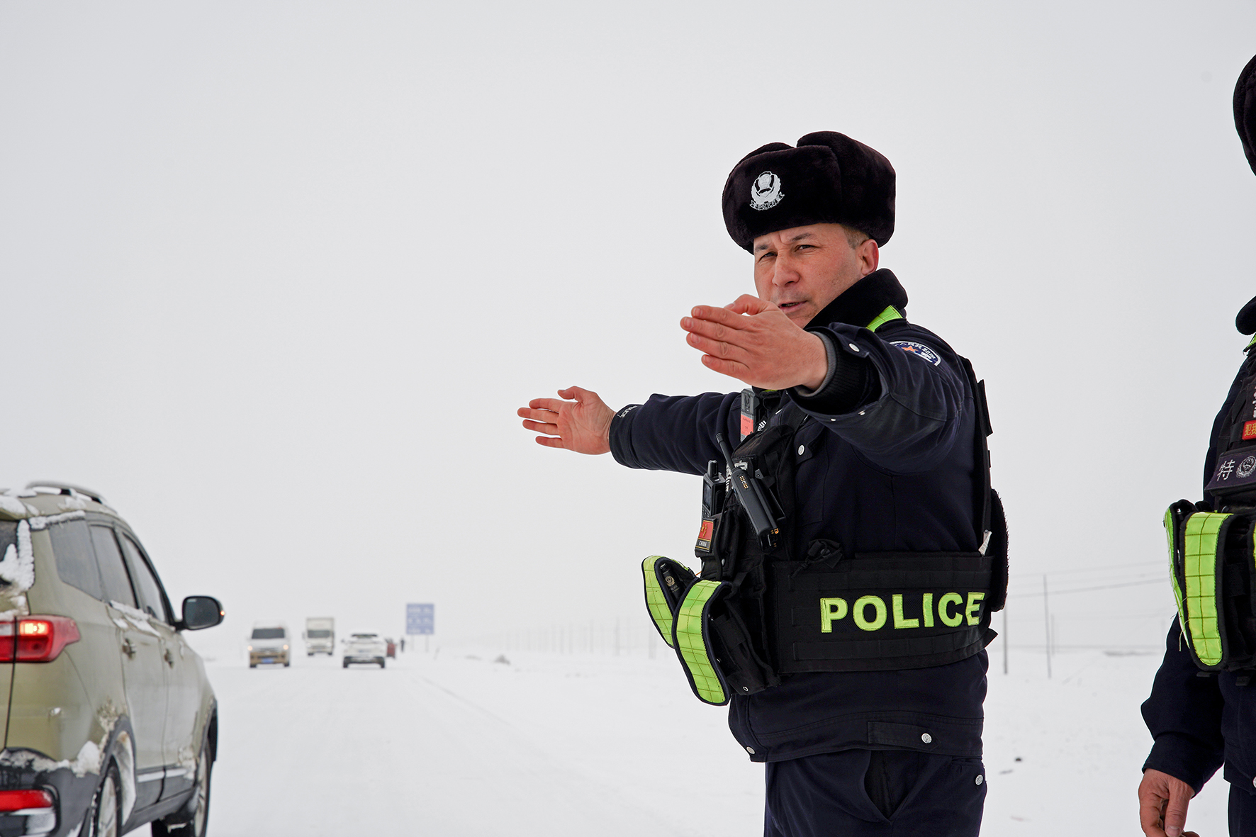 2月20日,新疆維吾爾自治區(qū)皮山縣境內(nèi)國道因大雪覆蓋通行受阻,皮山縣公安局組織警力對國道進行巡查,保障車輛通行。