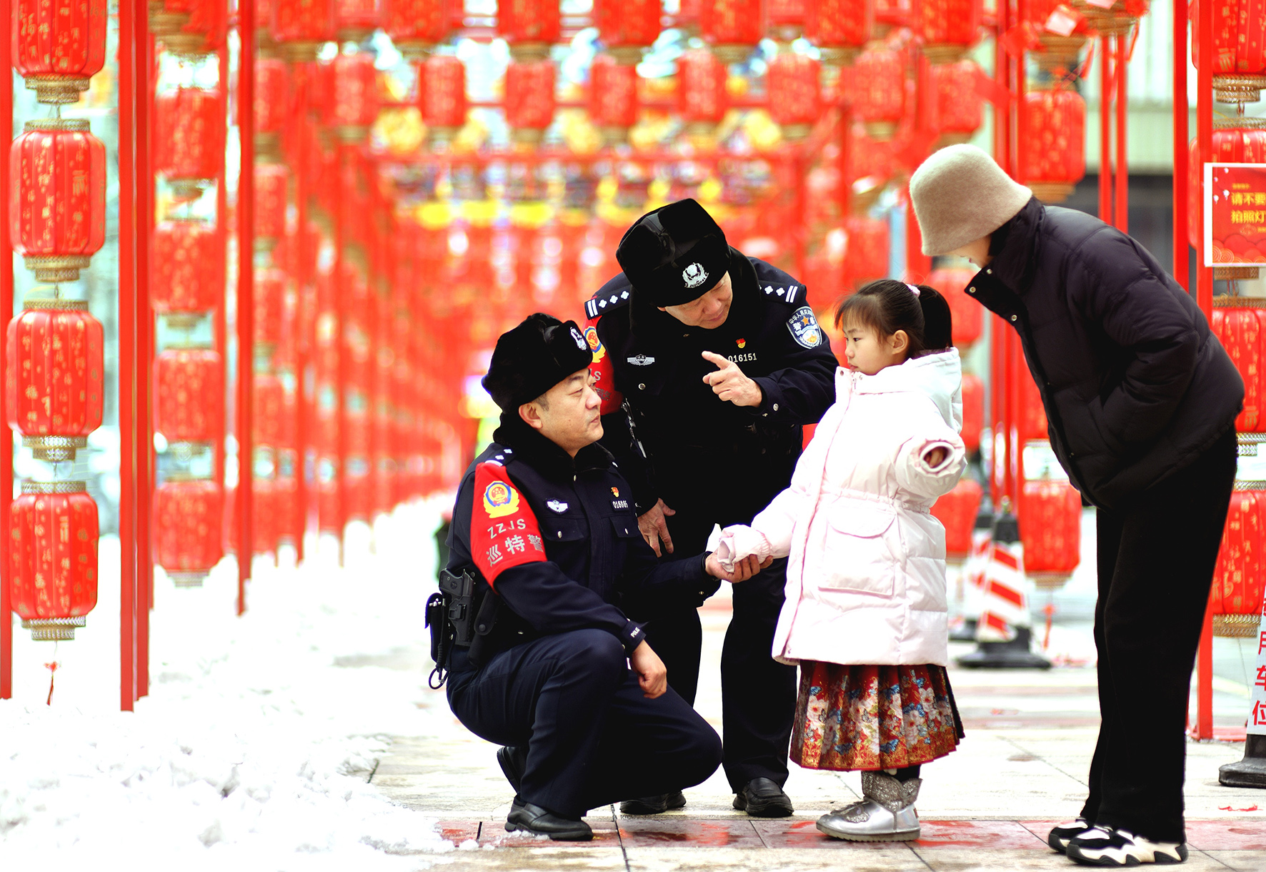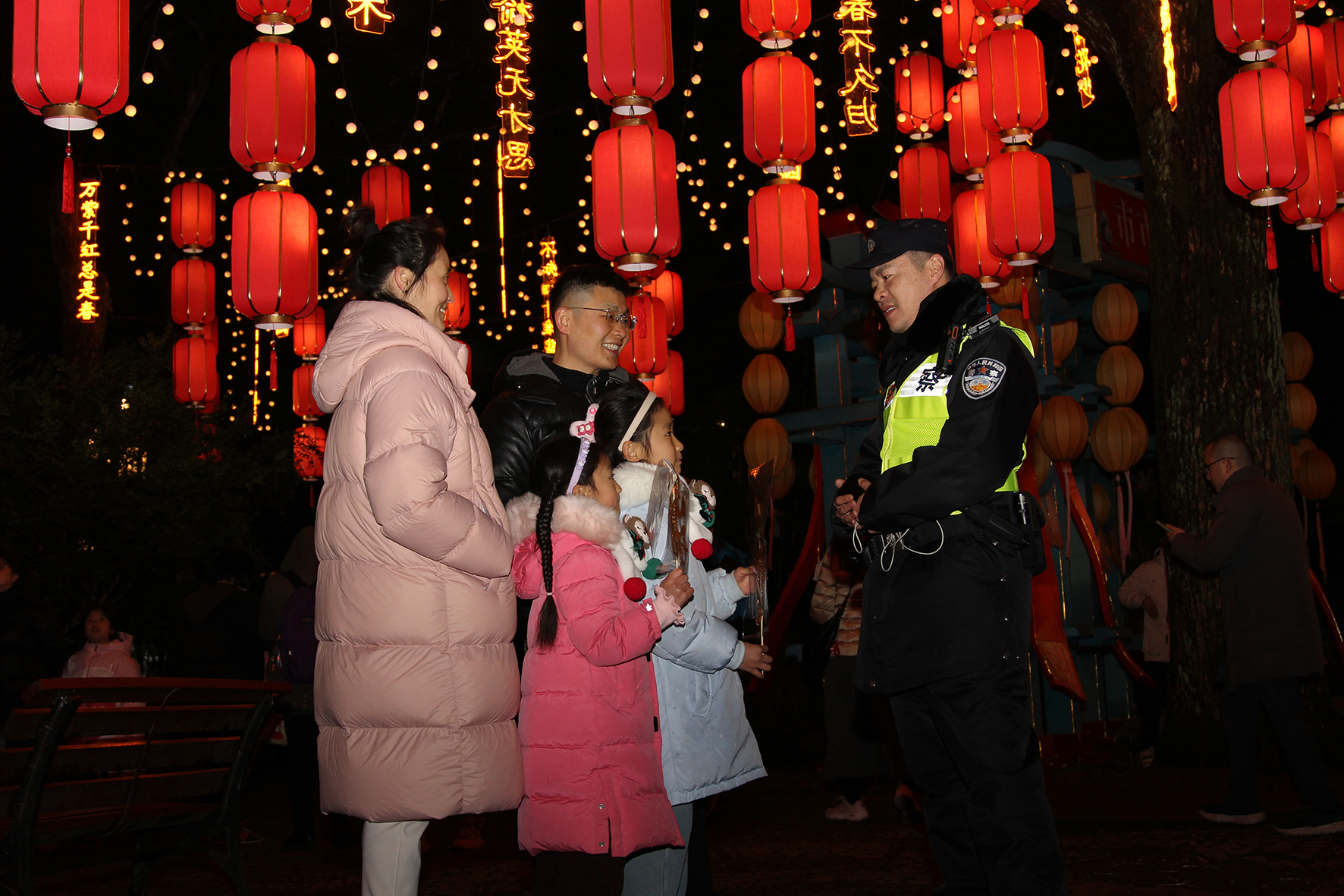 2月23日,河南省鄭州市公安局金水分局巡特警隊員在轄區(qū)鬧元宵場地,向群眾宣講節(jié)日安全防范知識。