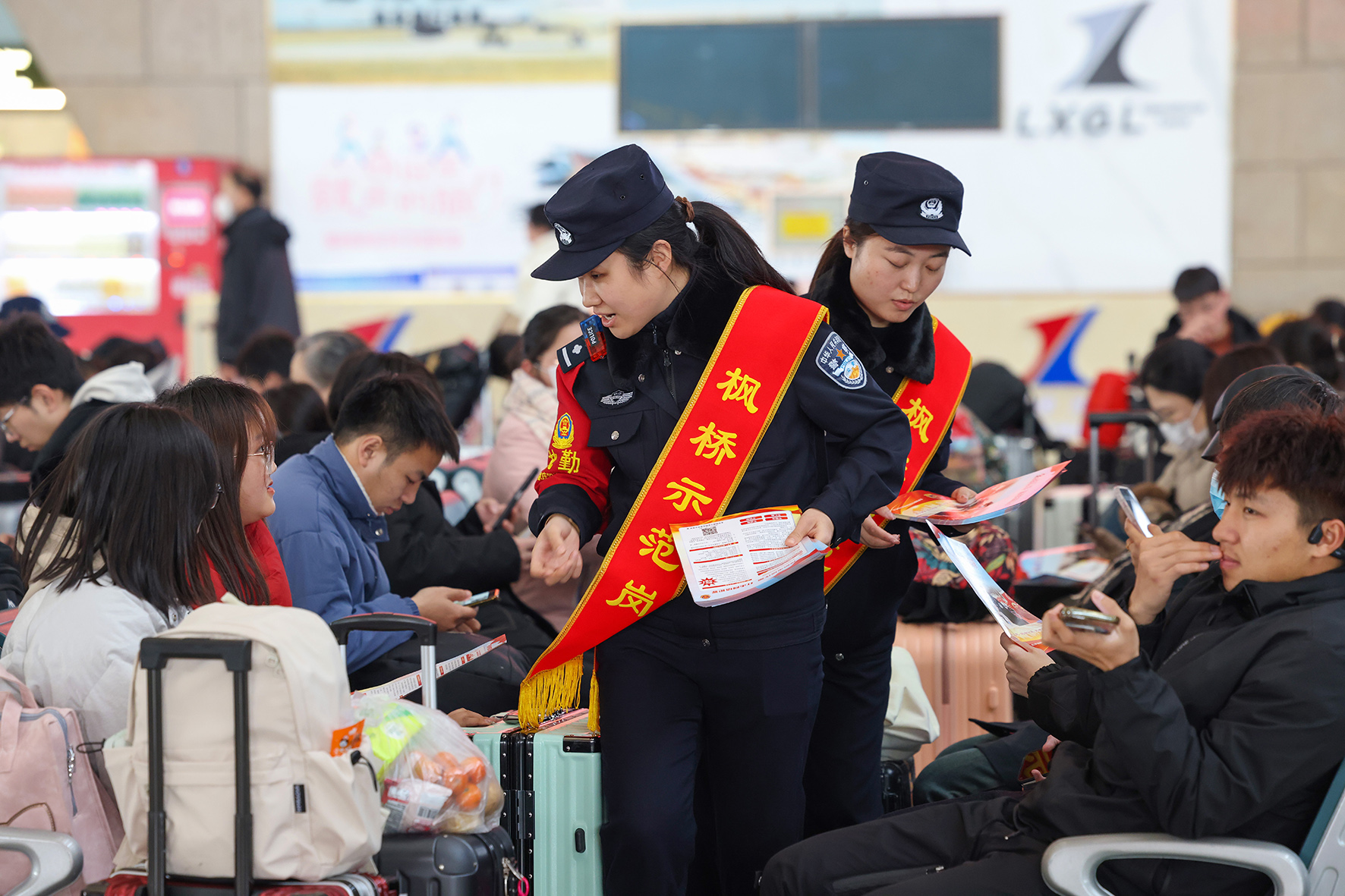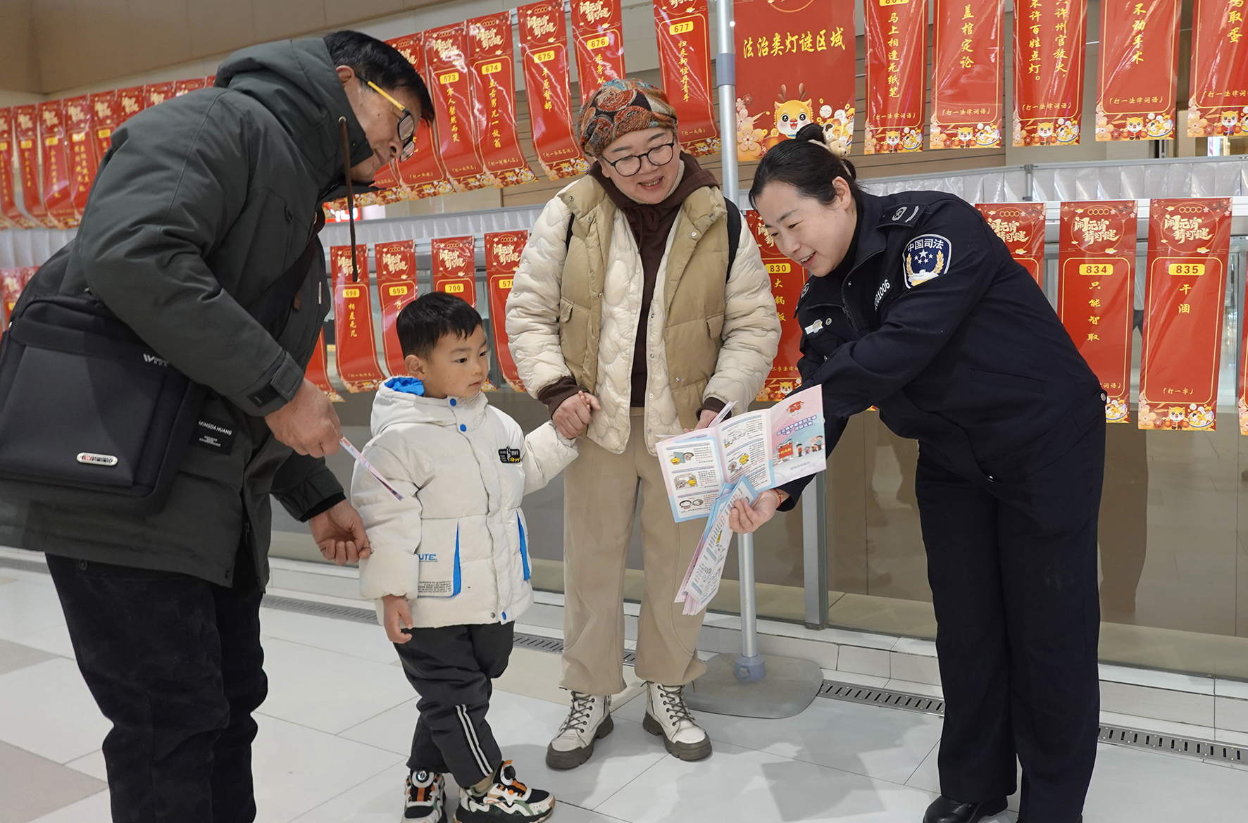 2月23日,石家莊火車站客流激增。石家莊鐵路公安處石家莊站派出所強化站區(qū)治安管控力度,向旅客進行反詐宣傳,確保站區(qū)秩序平穩(wěn)。