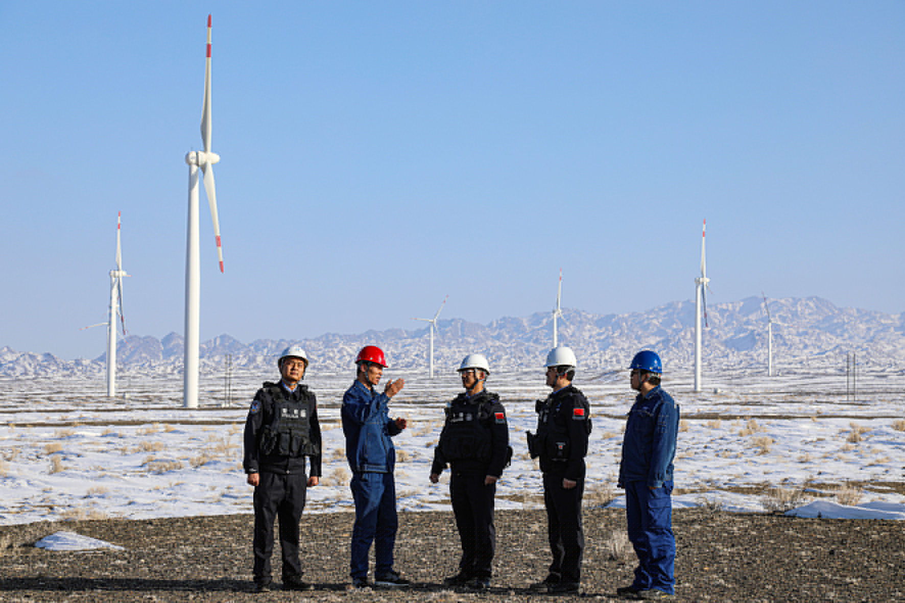 3月5日,新疆出入境邊防檢查總站阿勒泰邊境管理支隊(duì)薩爾托海邊境派出所的移民管理警察深入轄區(qū)大型新能源風(fēng)電場(chǎng)區(qū)和光伏電站開展安全生產(chǎn)檢查。