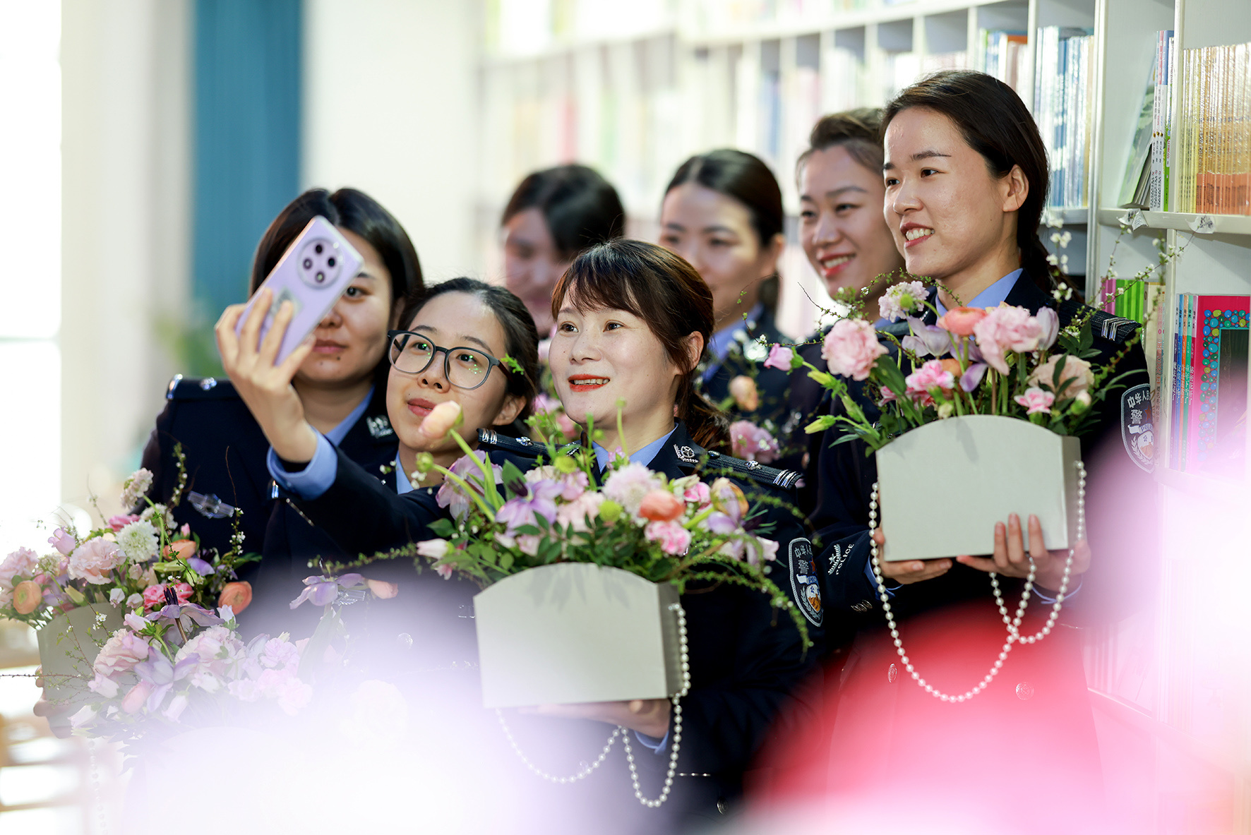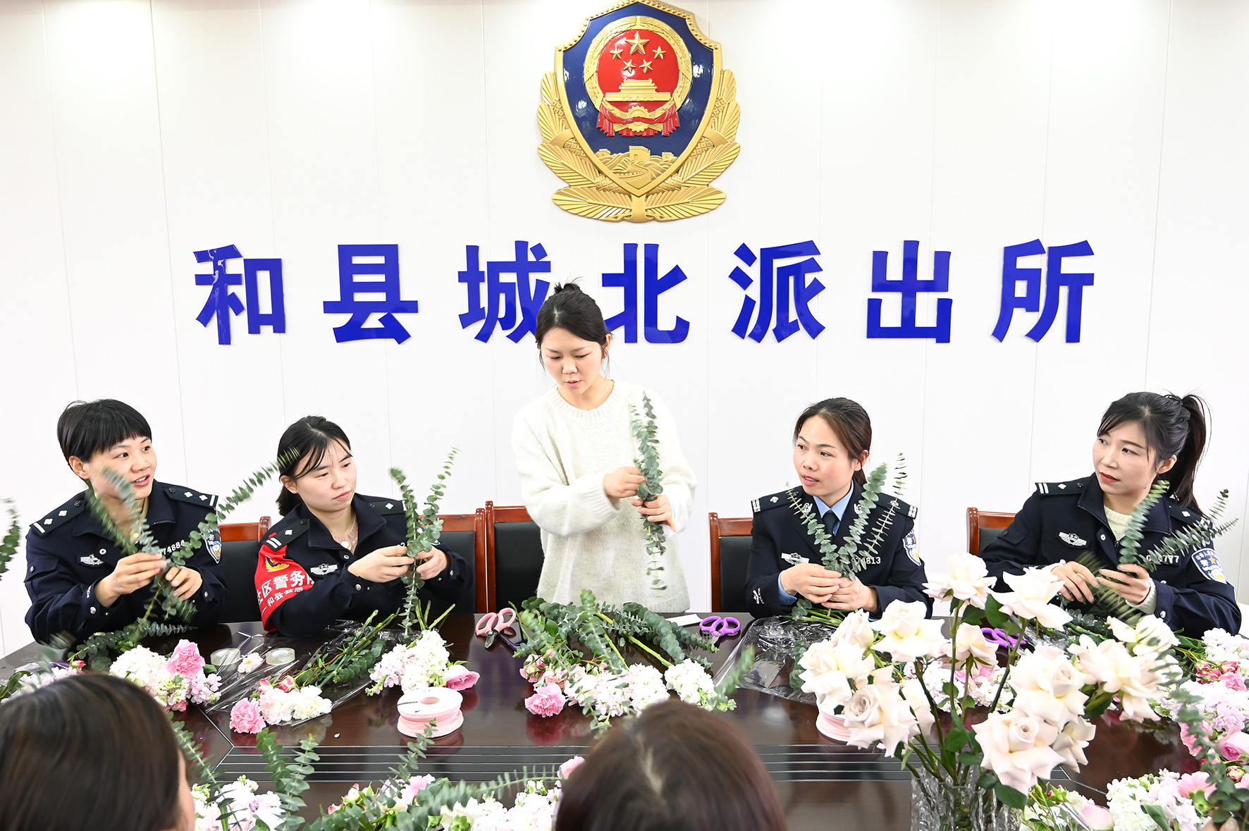 3月6日,安徽省馬鞍山市和縣公安局城北派出所組織女警開展“巾幗心向黨 花語綻芳華”主題插花活動。