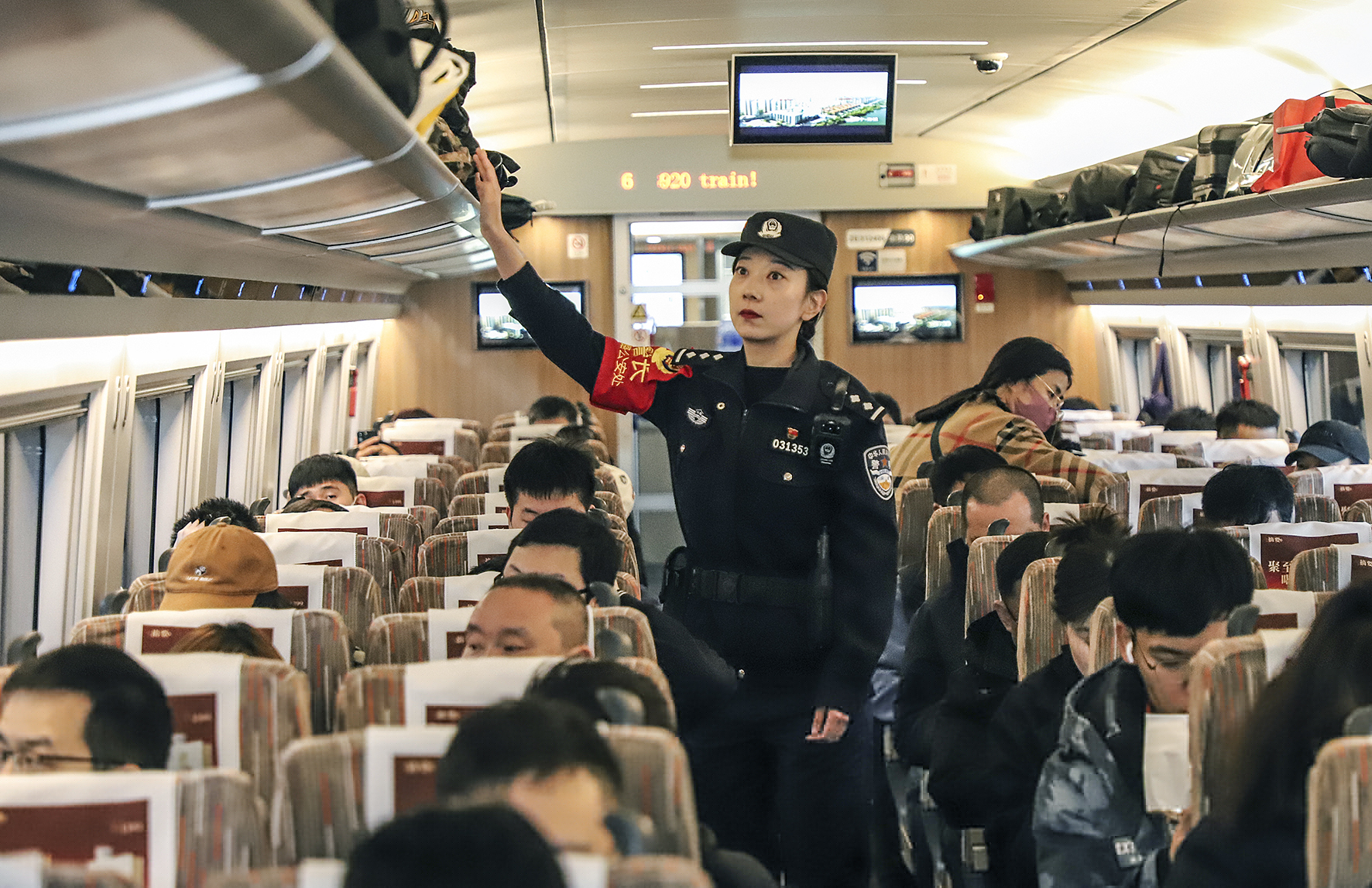 3月7日,沈陽鐵路公安局沈陽公安處乘警支隊的女民警在自己的工作崗位上迎接“三八”國際婦女節(jié)的到來。
