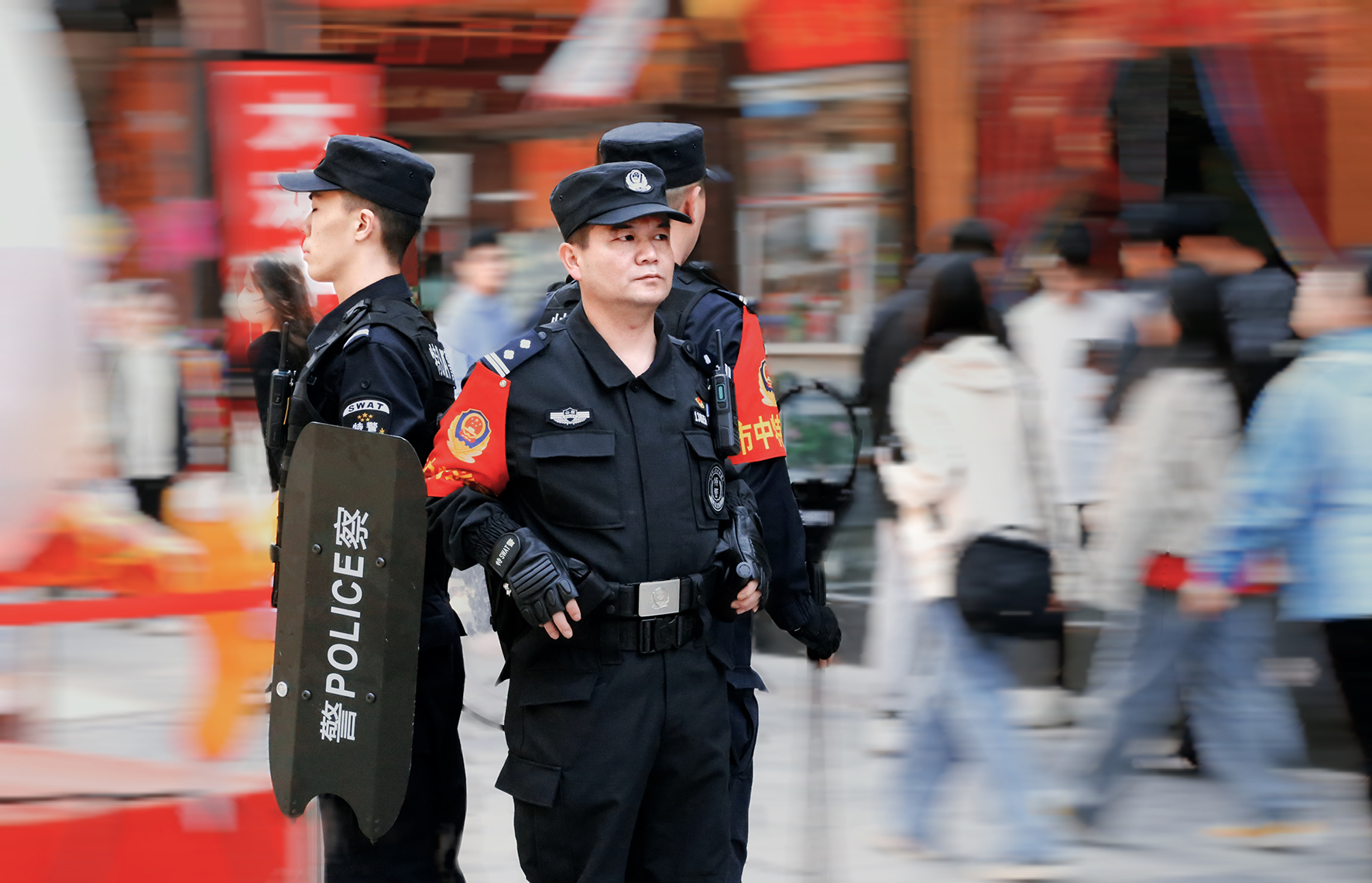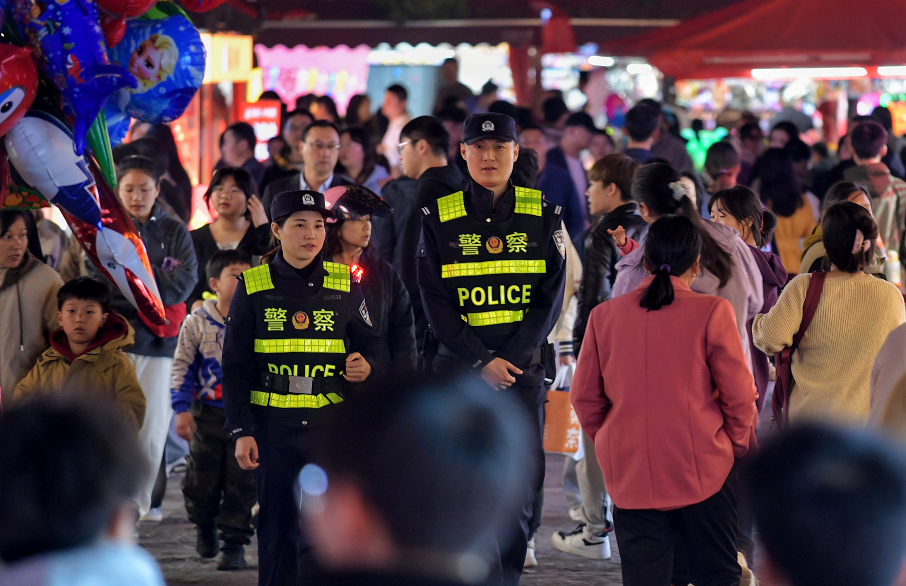 4月5日,山東省濟南市公安局市中區(qū)分局特巡警大隊民警在老商埠區(qū)巡邏執(zhí)勤,為市民游客提供服務。