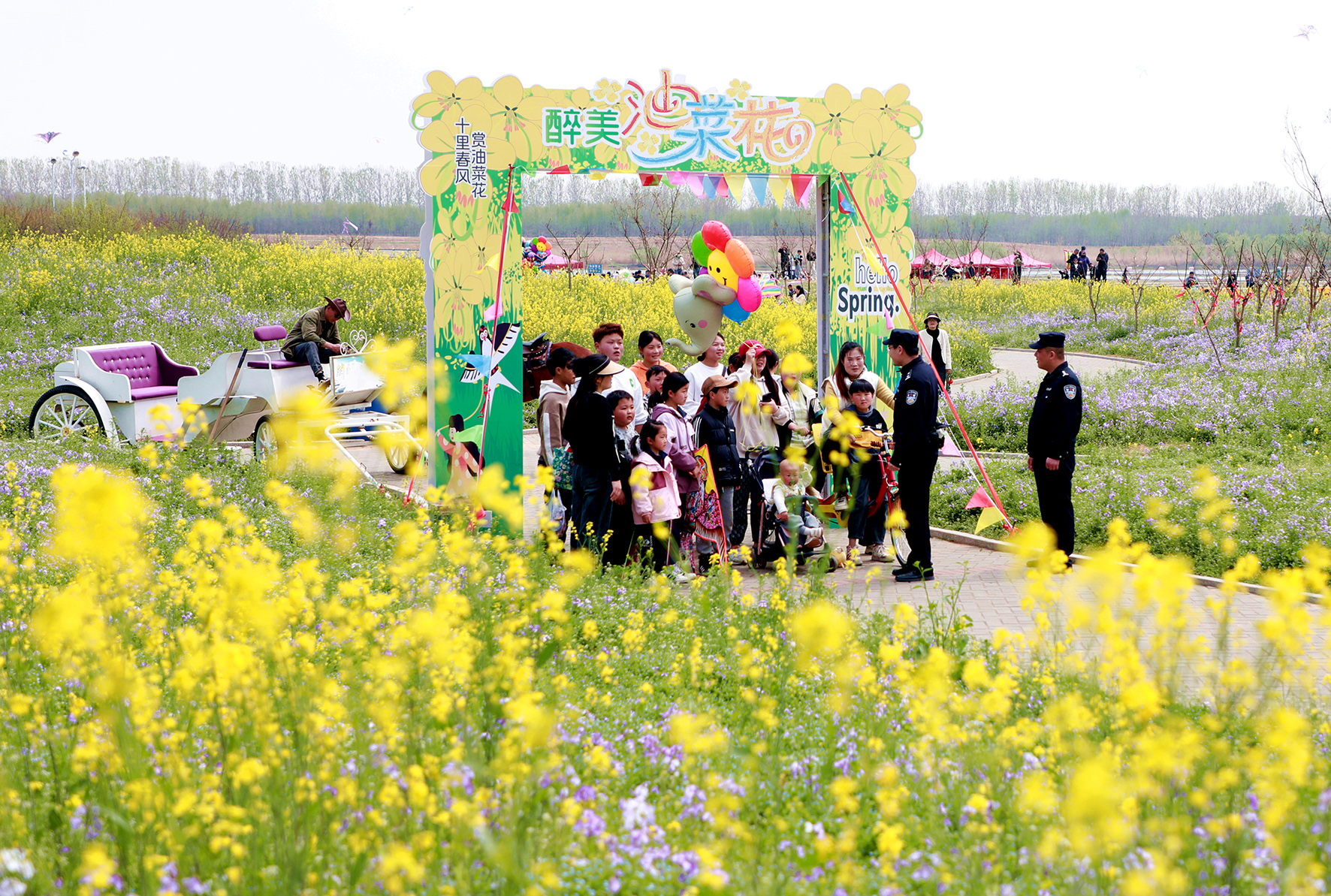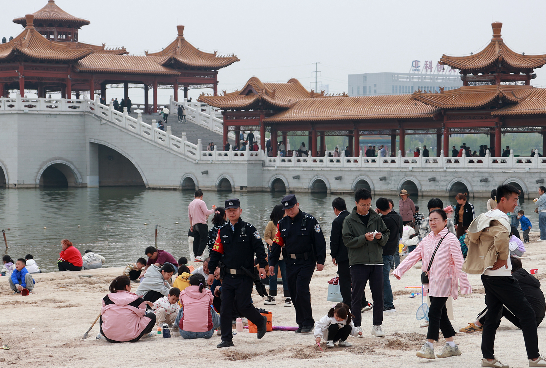 4月5日,陜西省大荔縣公安局官池派出所抽調(diào)警力在沙苑水庫開展巡邏,服務游客。