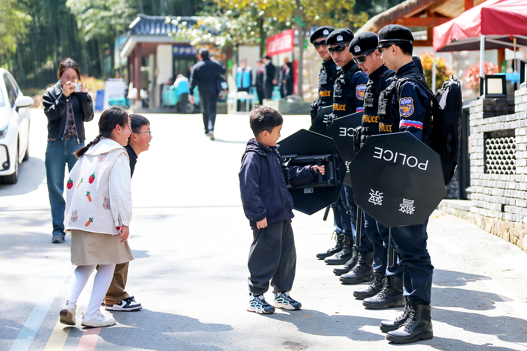 4月5日,江蘇省宜興市公安局巡特警大隊EPU警英小隊民輔警在宜興市太華鎮(zhèn)“一線天”山林景區(qū)維護秩序、疏導交通、服務游客。