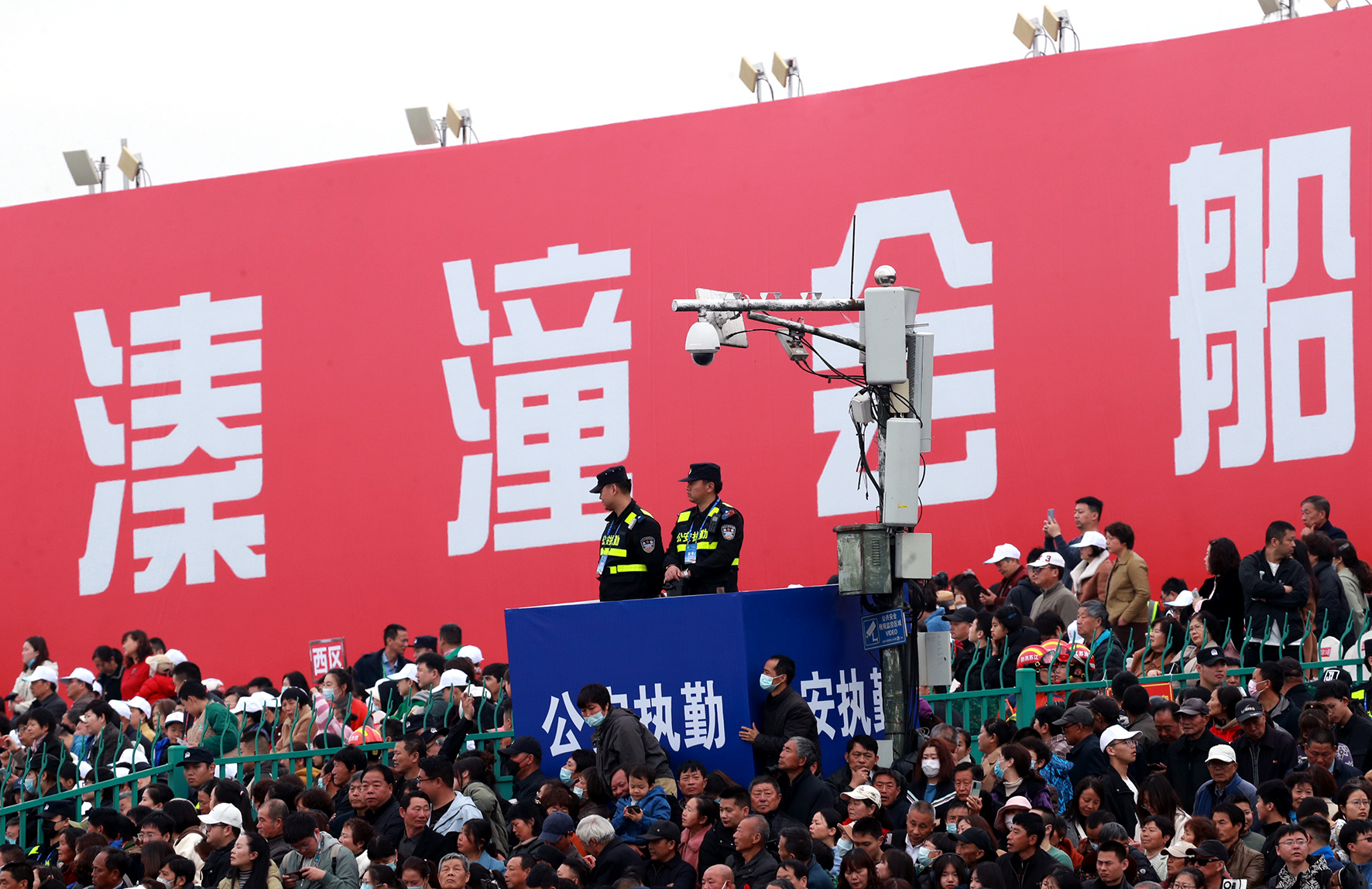 4月6日,2024年泰州姜堰溱潼會船在泰州市姜堰區(qū)溱湖國家濕地公園開幕。泰州市公安局姜堰分局組織民警輔警開啟“護航”模式,確保群眾安全觀看溱潼會船盛況。