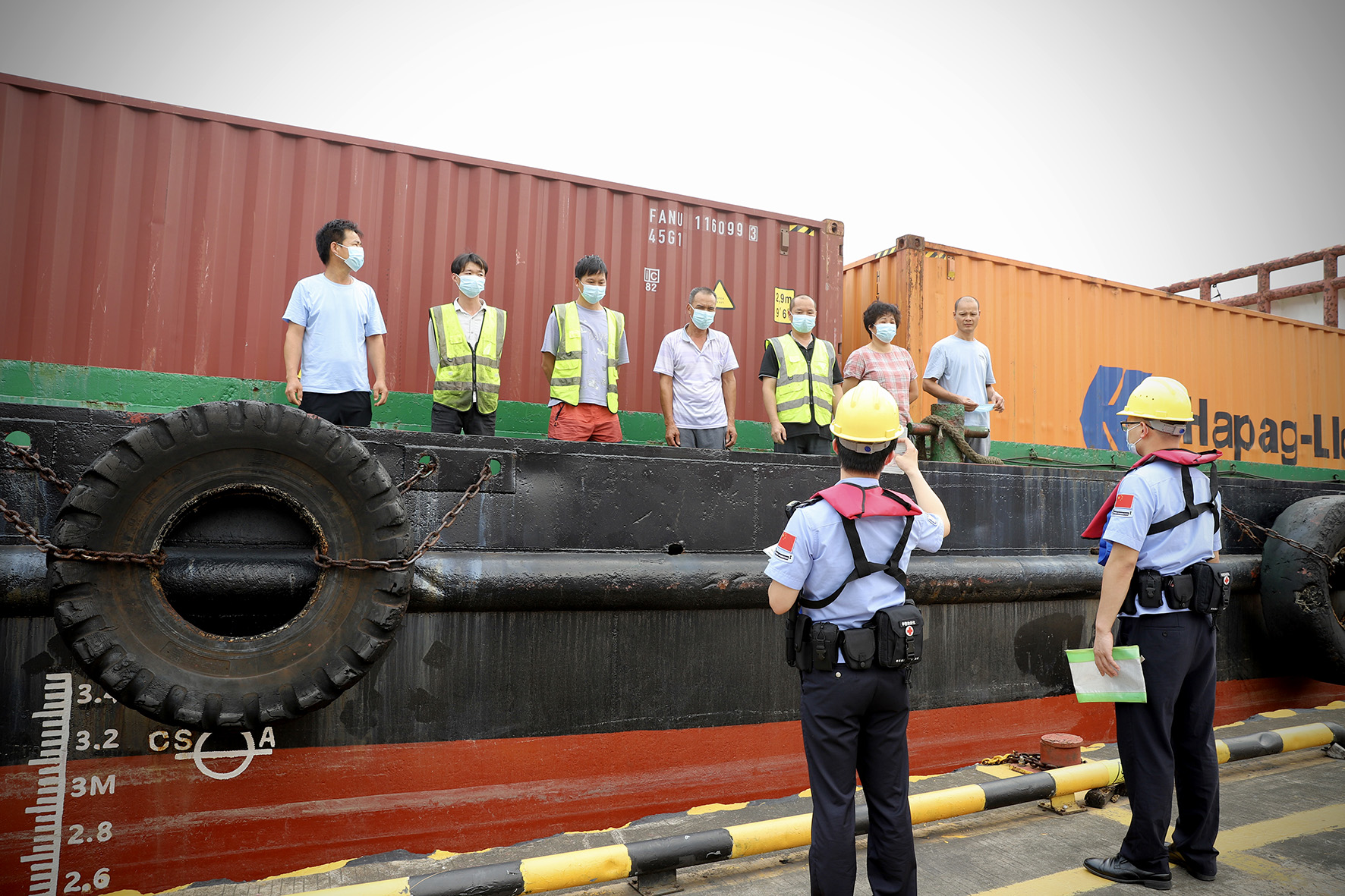 5月1日,珠海邊檢總站開平邊檢站執(zhí)勤移民管理警察,為到港船舶開通“綠色通道”,快速辦理入境手續(xù)。