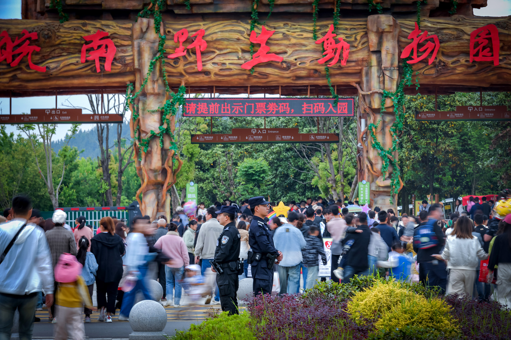 5月2日,安徽省涇縣公安局民警在皖南野生動物園開展巡邏執(zhí)勤。