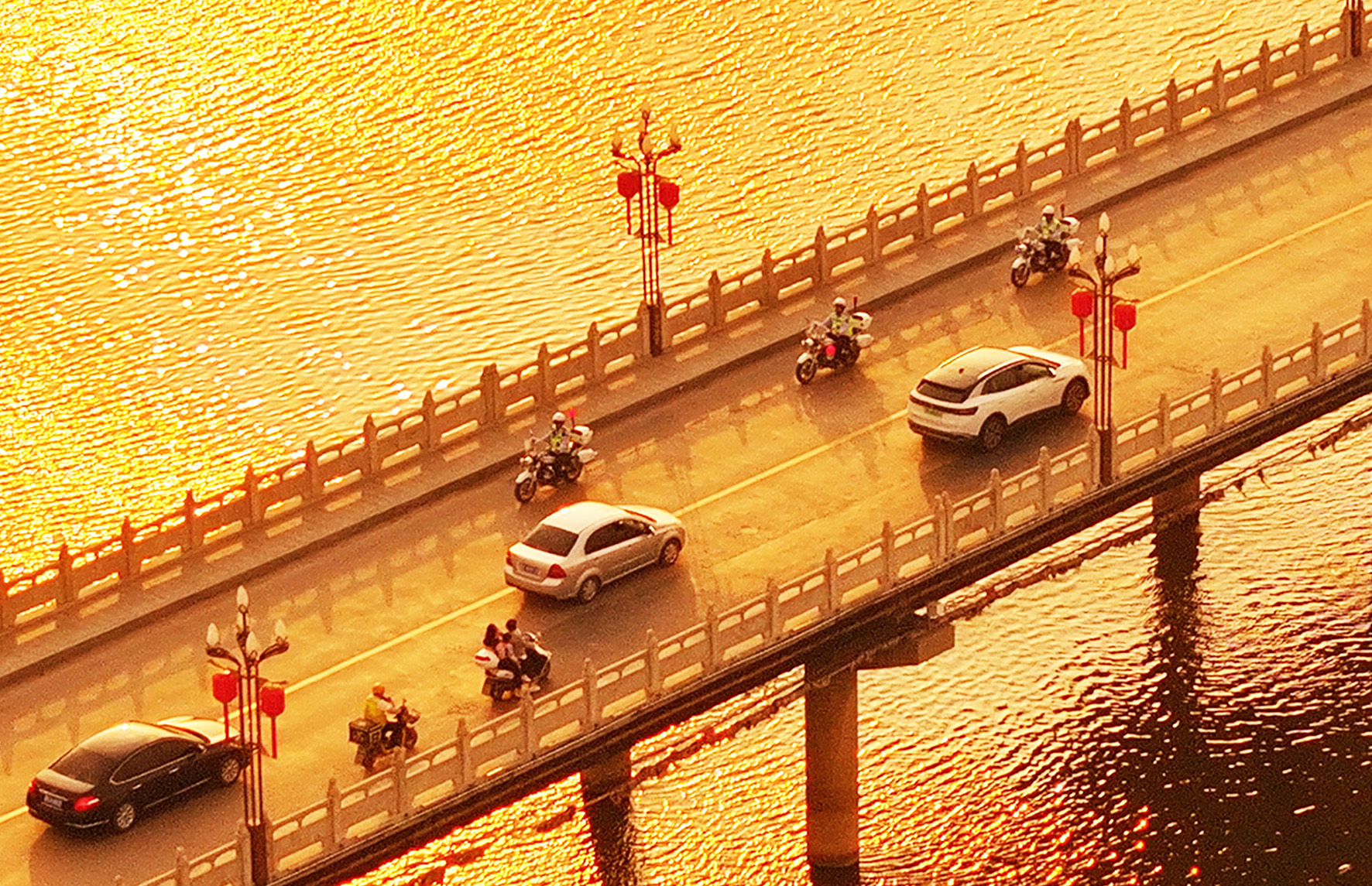 5月1日,山西省運城市新絳縣公安局交警大隊古城中隊民輔警在汾河公路大橋巡查。