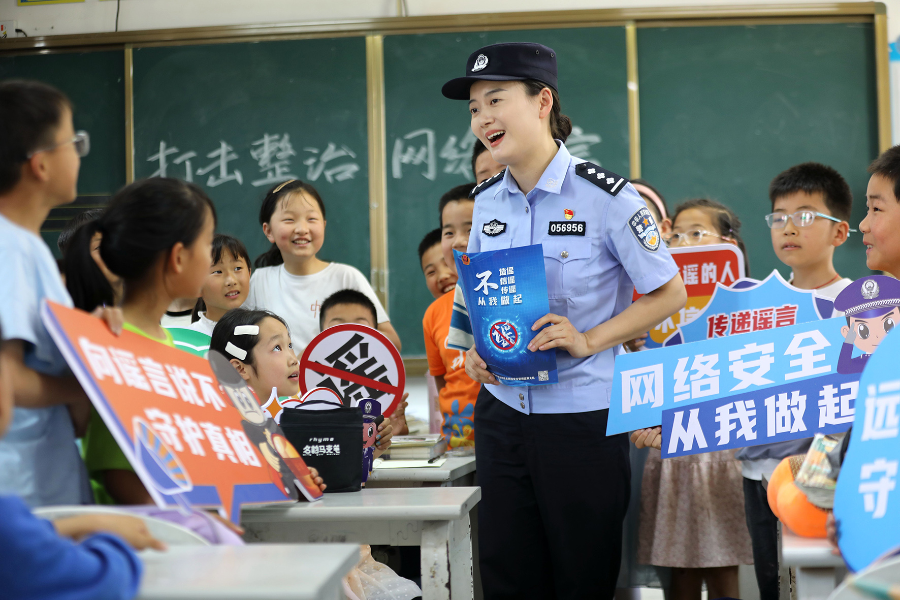 5月17日,安徽省舒城縣公安局網(wǎng)監(jiān)大隊聯(lián)合柏林派出所來到柏林鄉(xiāng)中心小學開展整治網(wǎng)絡謠言宣傳活動。