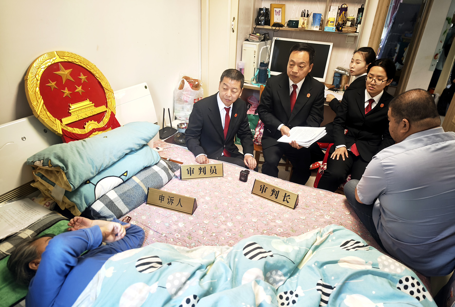 鄭某某因故意毀壞財(cái)物罪被判處刑罰,但鄭某不服向四平市中級(jí)人民法院提出刑事申訴。鄭某某天生患有小兒麻痹癥,不久前又因意外造成腰部受傷,臥床不起。面對(duì)亟待解決的法律申訴問(wèn)題,四平中院法官將法庭“搬”到了鄭某某的家中,在病床前舉行申訴聽(tīng)證會(huì)。