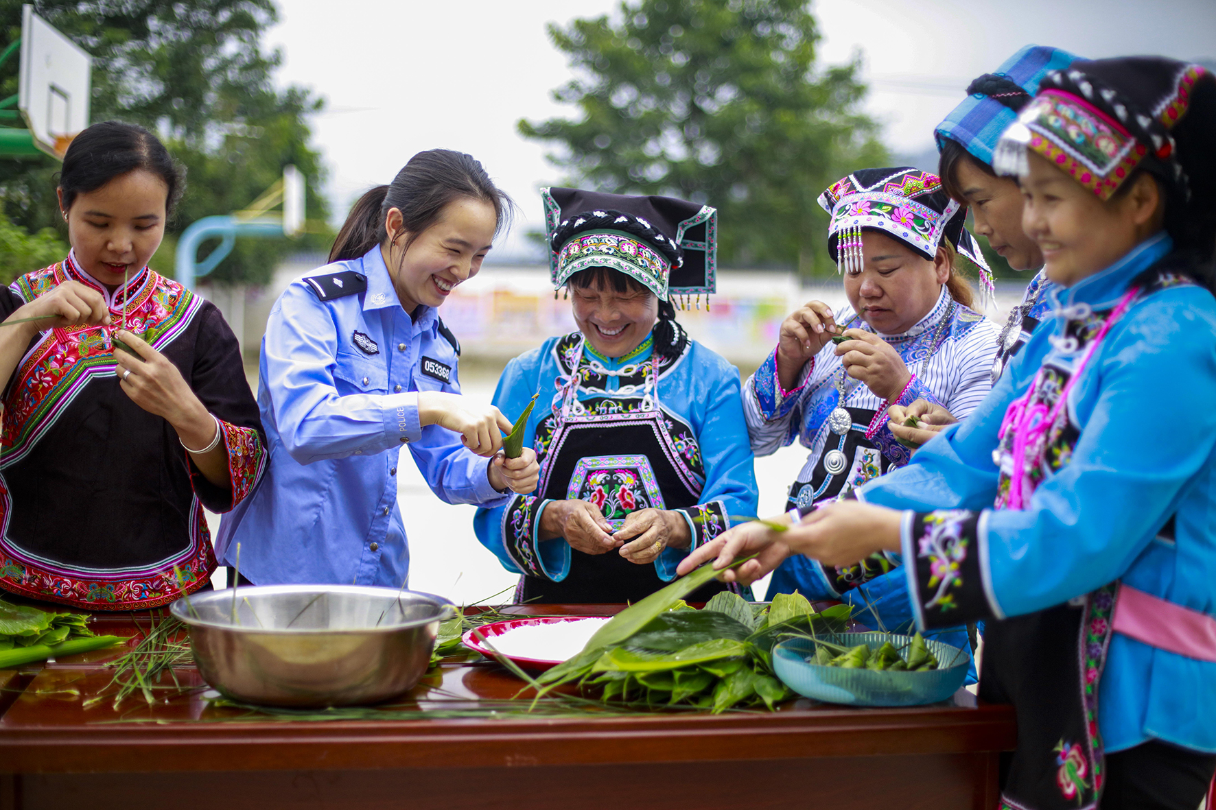 6月6日,貴州省黔西市公安局五里布依族苗鄉(xiāng)派出所民警到轄區(qū)內(nèi)的中心村和布依群眾一起包粽子,并向布依群眾講解普及禁毒、預(yù)防電信網(wǎng)絡(luò)詐騙、養(yǎng)老詐騙等知識。