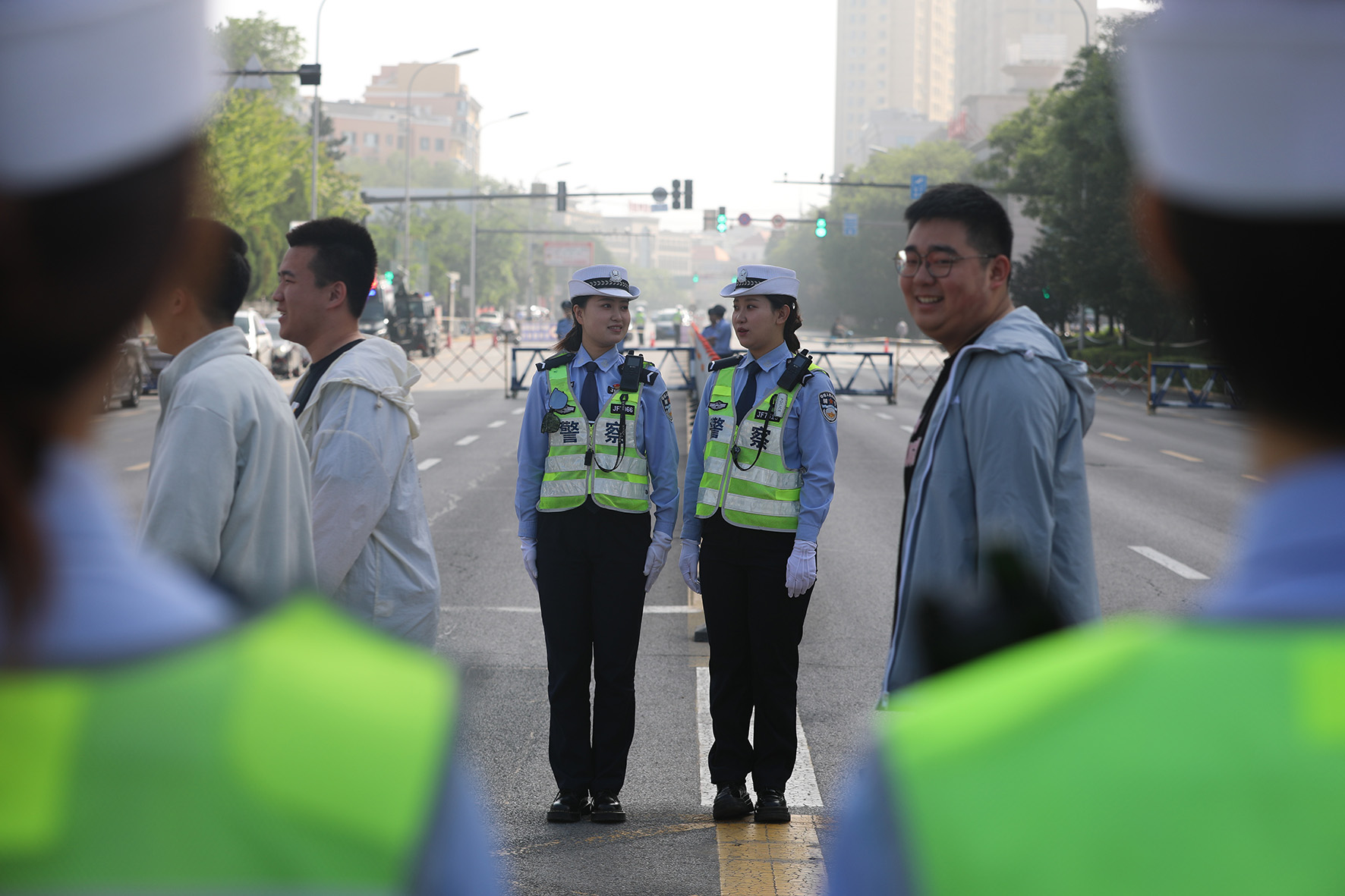 6月9日,遼寧省阜新市公安局交警支隊民警堅守崗位,為高考護航。