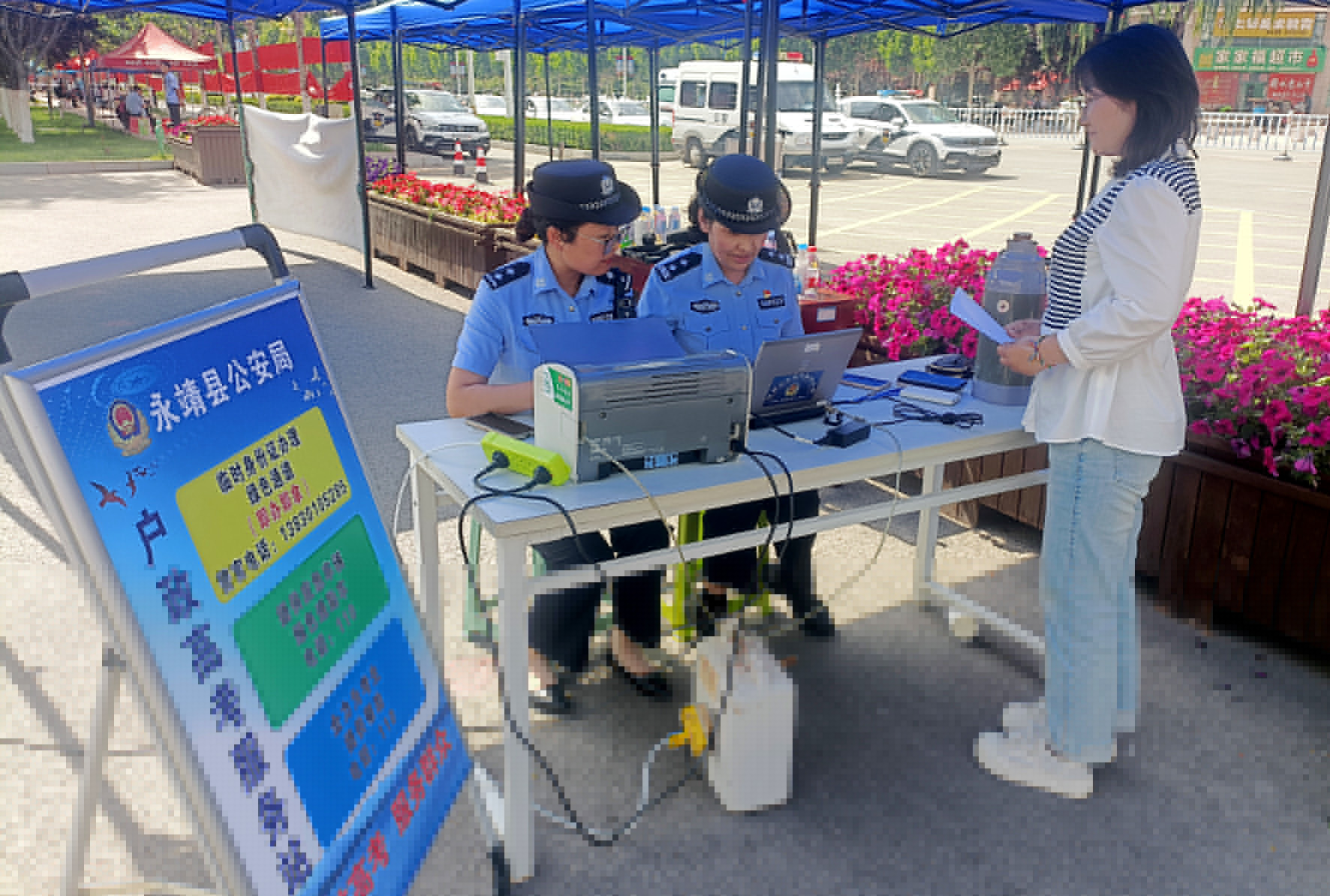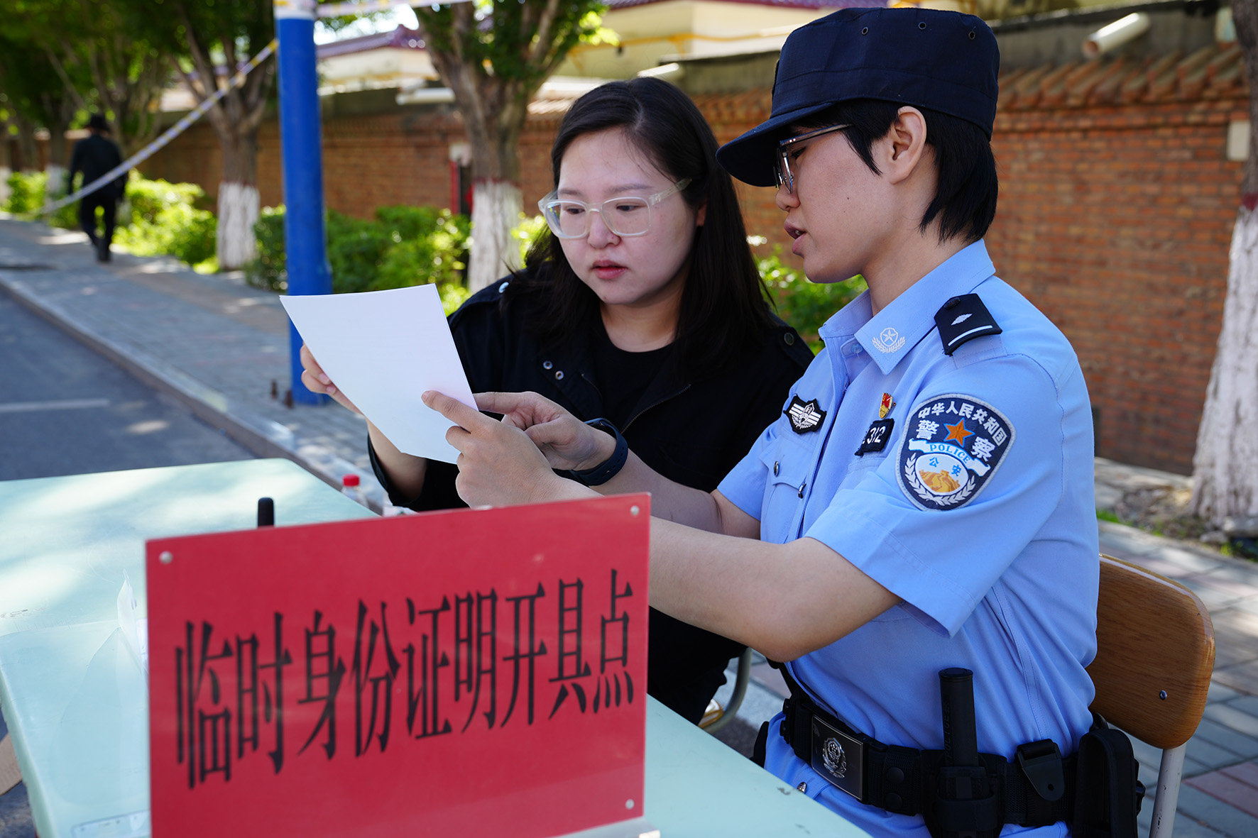 6月7日,甘肅省永靖縣公安局在文理科兩個考點設(shè)置“戶政高考服務(wù)站”,為考生提供便利服務(wù)。