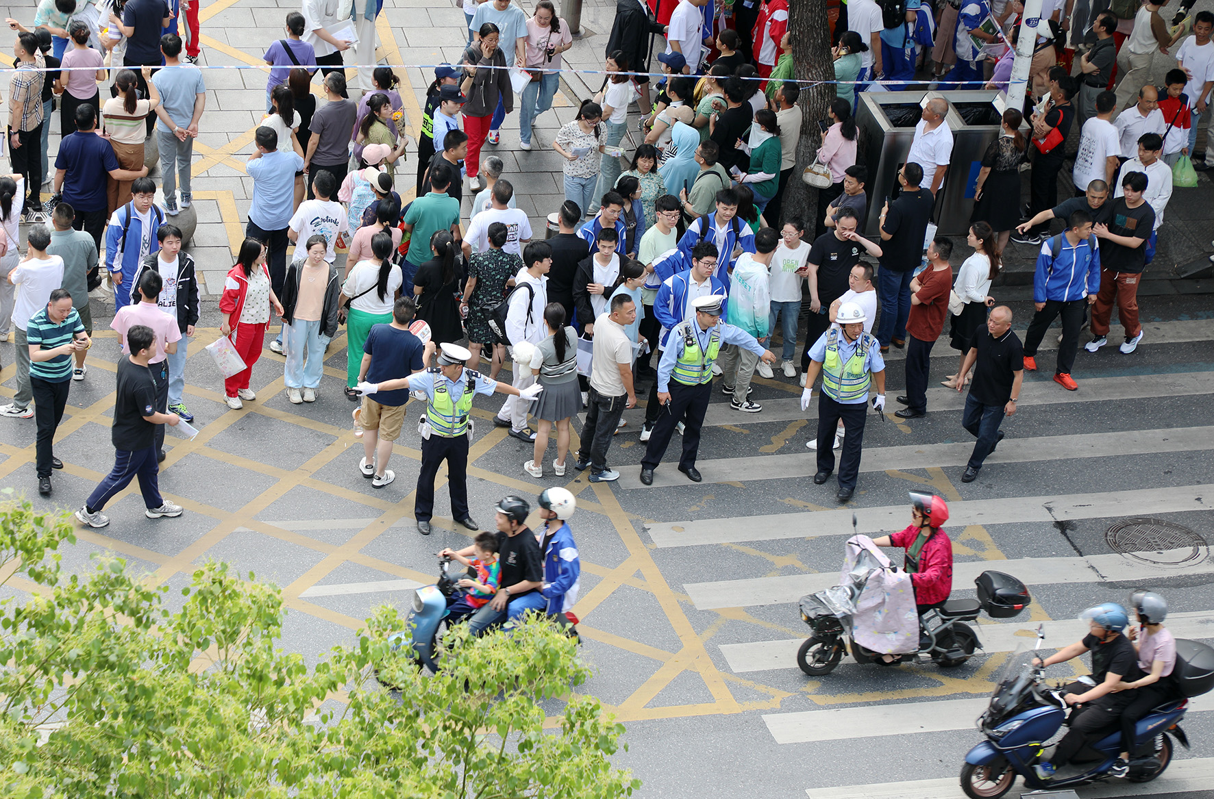 6月9日,安徽省合肥市公安局交警支隊民警在合肥考區(qū)八中考點外維護秩序。