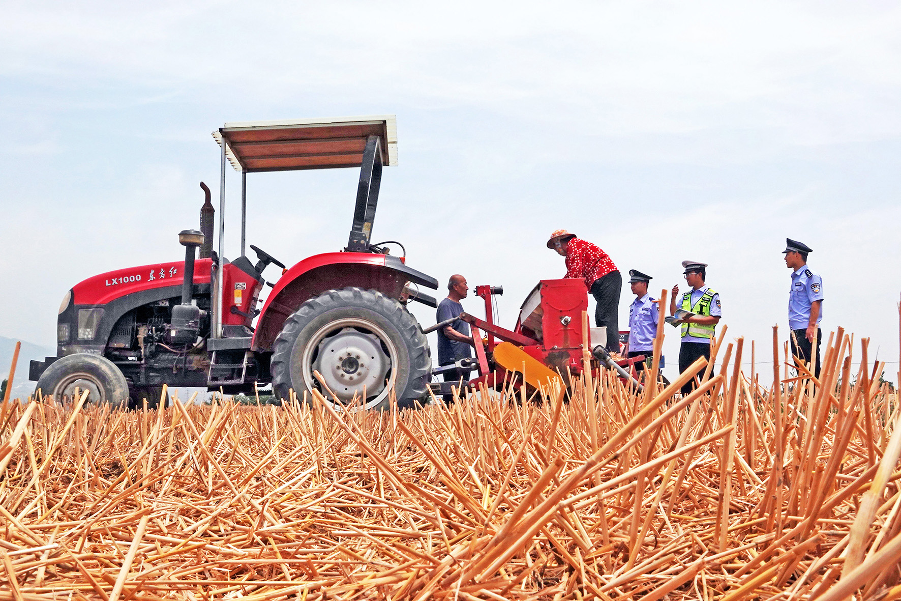 6月11日,山西省運(yùn)城市新絳縣公安局澤掌派出所聯(lián)動交警部門在澤掌鎮(zhèn)澤掌村田間,為農(nóng)機(jī)手講解三夏安全駕駛注意事項(xiàng)。