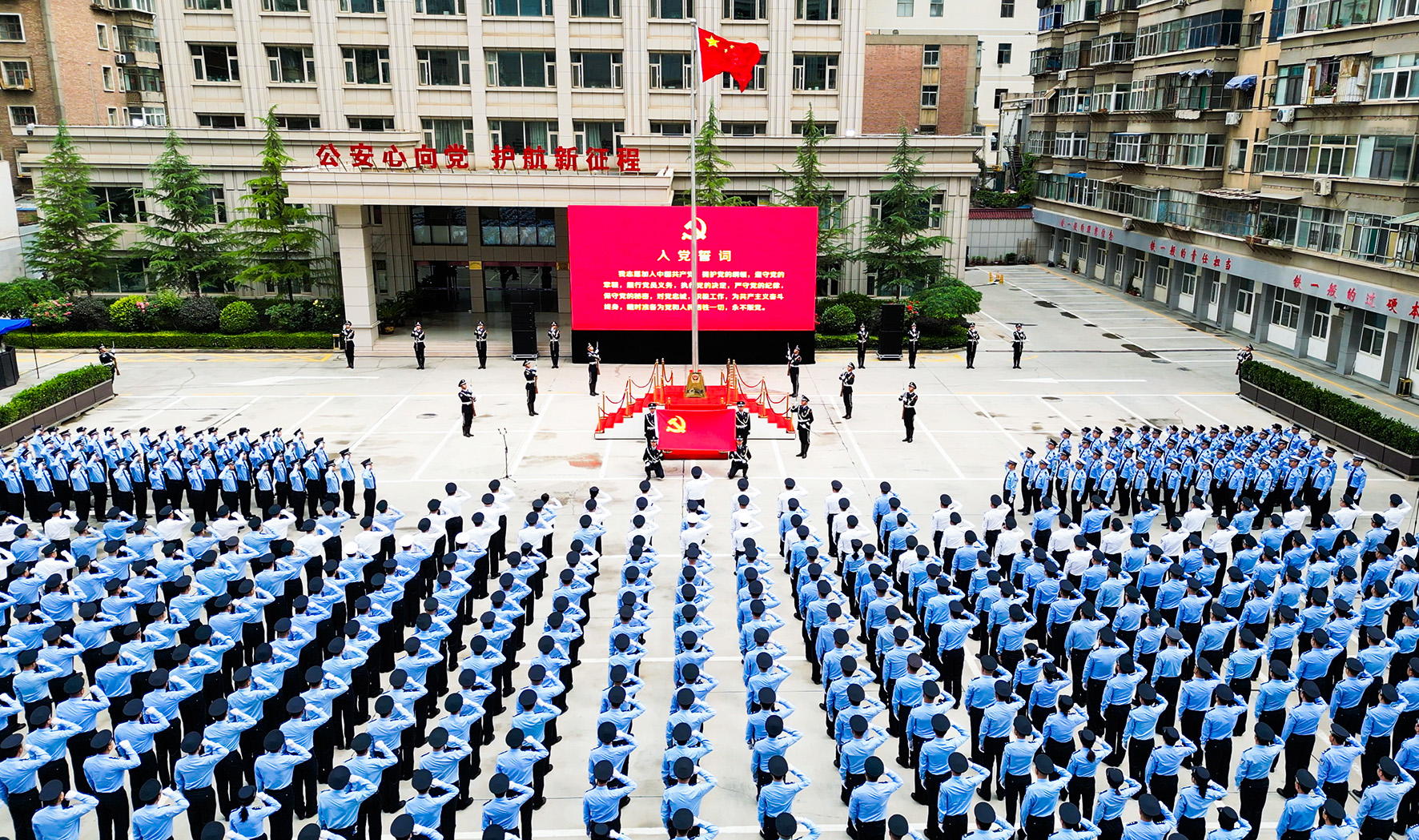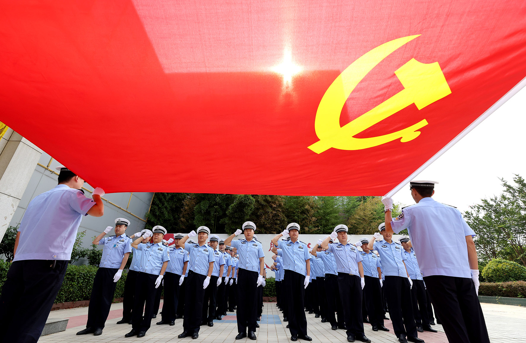 7月1日,甘肅省蘭州市公安局舉行升國旗儀式,熱烈慶祝中國共產(chǎn)黨成立103周年,銘記崢嶸歲月、謳歌豐功偉績、賡續(xù)光榮傳統(tǒng)。參加儀式的1500余名民輔警向國旗莊嚴(yán)敬禮,光榮入黨的新黨員集體宣誓,全體黨員重溫入黨誓詞。