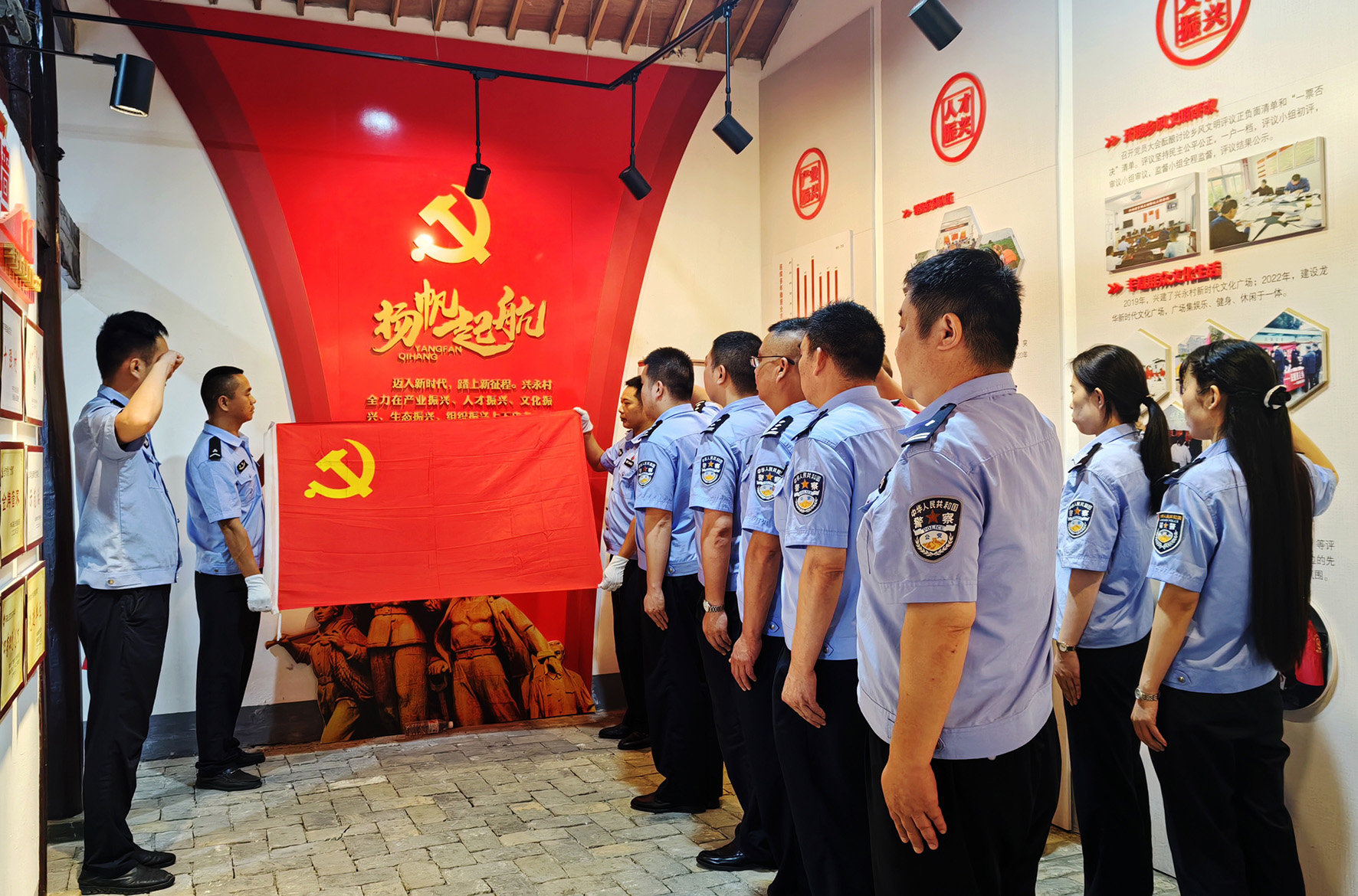6月28日,安徽省當(dāng)涂縣公安局大公圩北片聯(lián)合派出所組織石橋、塘南、大隴、護(hù)河四個(gè)派出所黨支部黨員民警輔警來到塘南鎮(zhèn)莊村灣黨支部紀(jì)念館,回顧建黨歷史、緬懷革命先烈、接受紅色教育、激勵(lì)工作熱情,進(jìn)一步筑牢黨員民警理想信念、堅(jiān)定政治立場(chǎng)、強(qiáng)化黨性修養(yǎng)。