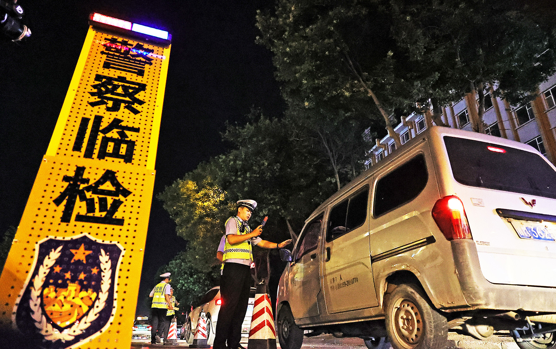 7月6日晚,山西省運(yùn)城市新絳縣公安局交警大隊(duì)民輔警在全國(guó)公安機(jī)關(guān)夏夜治安巡查宣防集中統(tǒng)一行動(dòng)中嚴(yán)查酒駕等嚴(yán)重交通違法行為。