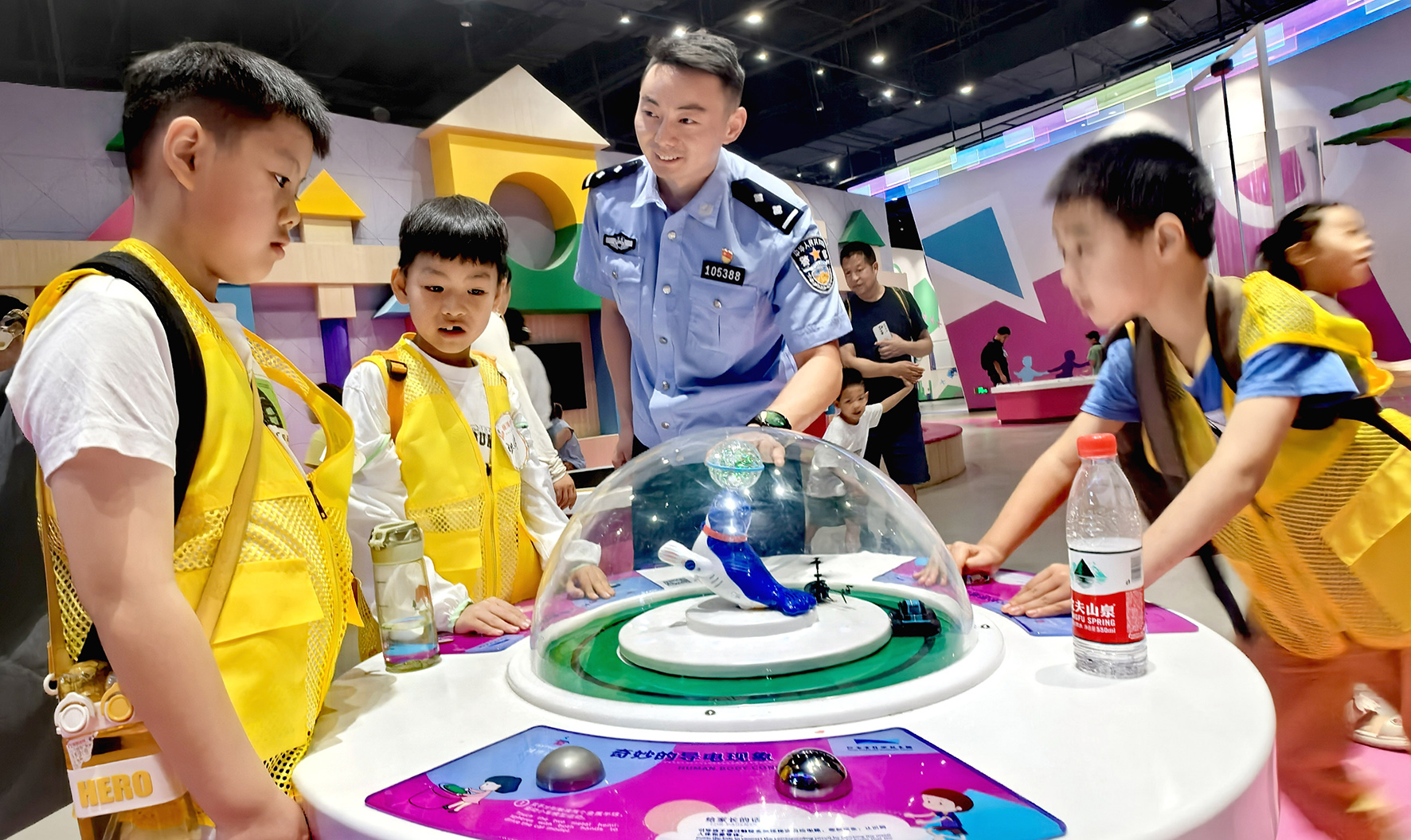 7月12日,河南省鄭州市公安局金水分局暑假警營愛心托管班的孩子們來到河南省科技館學(xué)習(xí)體驗新科技。
