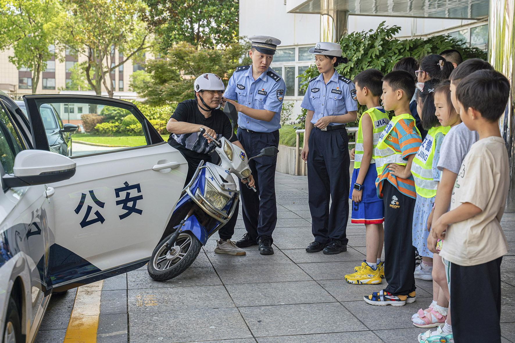 圖為7月26日,崇明分局交警支隊組織民警來到“安心暑托班”,為孩子們上了一堂生動的交通安全課。