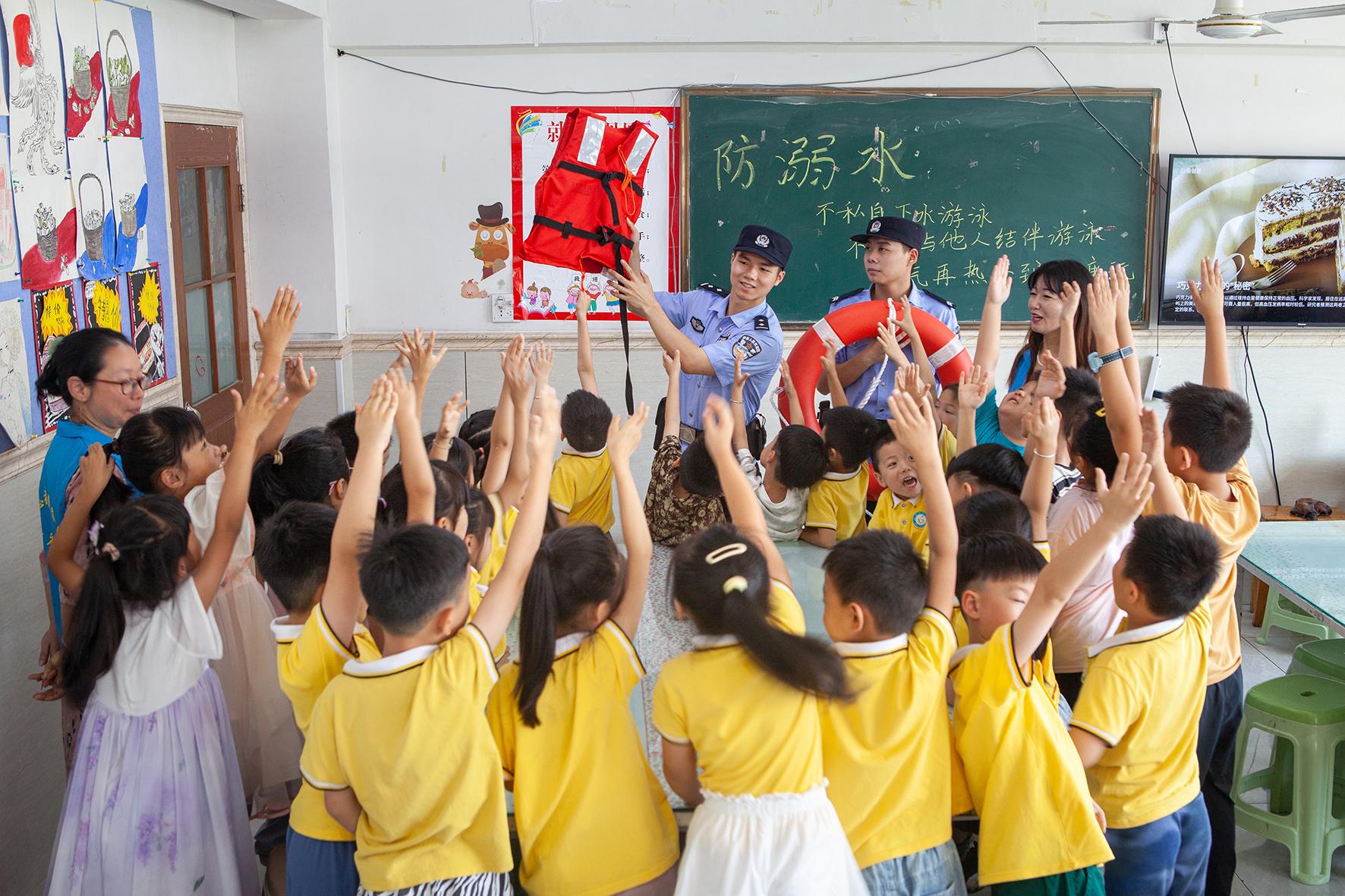 8月12日,浙江省臺(tái)州市公安局黃巖分局江口派出所民警來到轄區(qū)內(nèi)的涵藝文創(chuàng)園,給參加暑期培訓(xùn)的小朋友們開展防溺水宣傳,提升他們的防范意識(shí)。