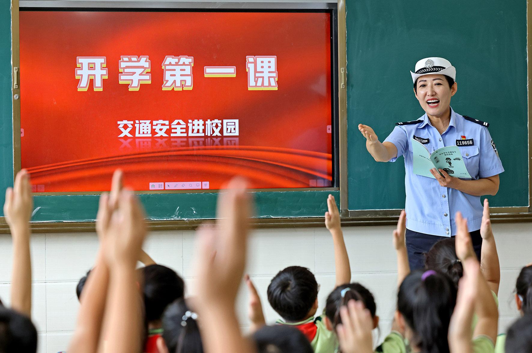 9月2日,山東省濟(jì)南市公安局市中區(qū)分局組織民警走進(jìn)轄區(qū)學(xué)校給學(xué)生普及安全知識(shí),上好開(kāi)學(xué)“第一課”。