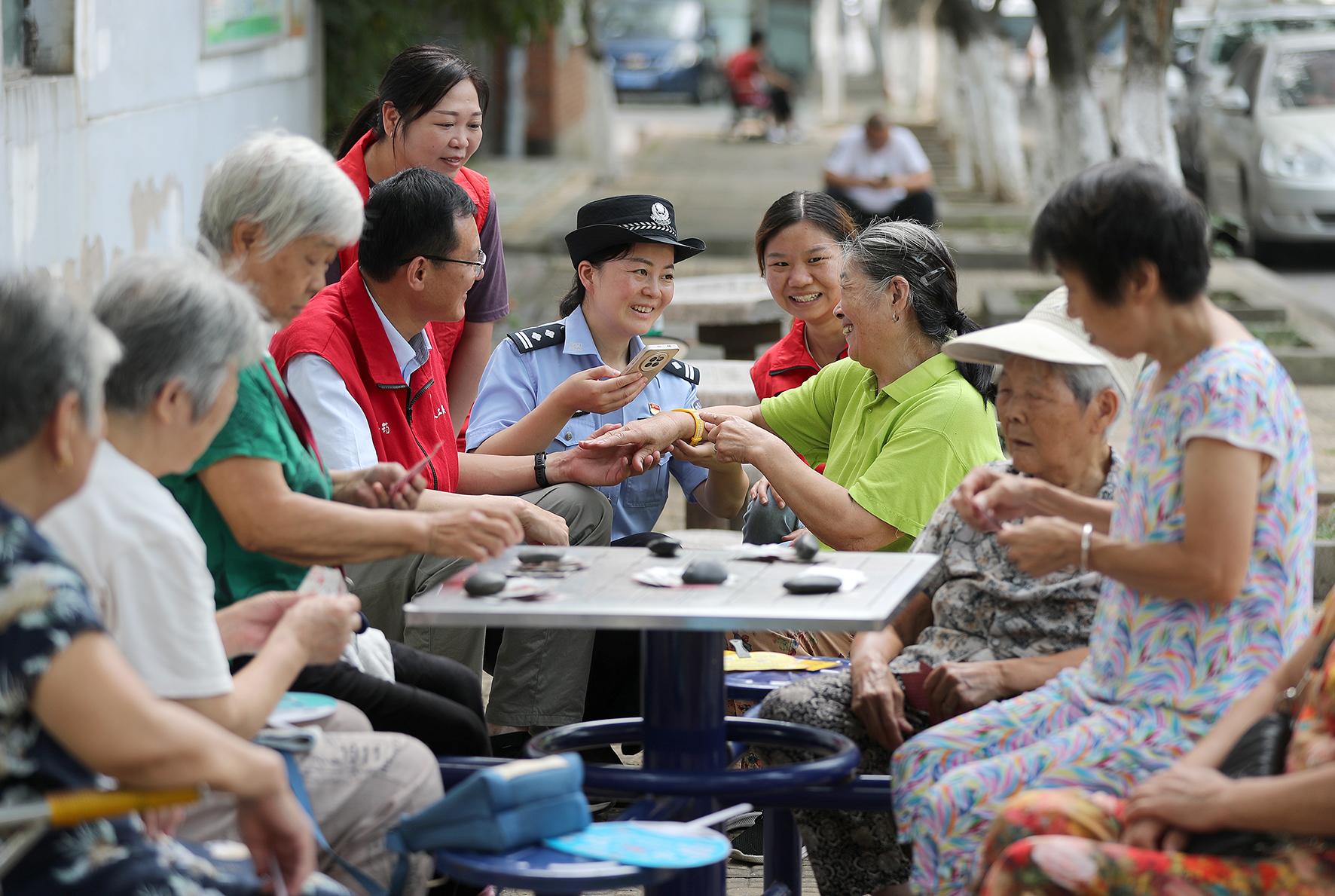 9月5日,湖北省荊門市公安局高新區(qū)·掇刀區(qū)分局白廟派出所民警在白廟街道長源熱電社區(qū),為一位老人成功申領(lǐng)“黃手環(huán)”。